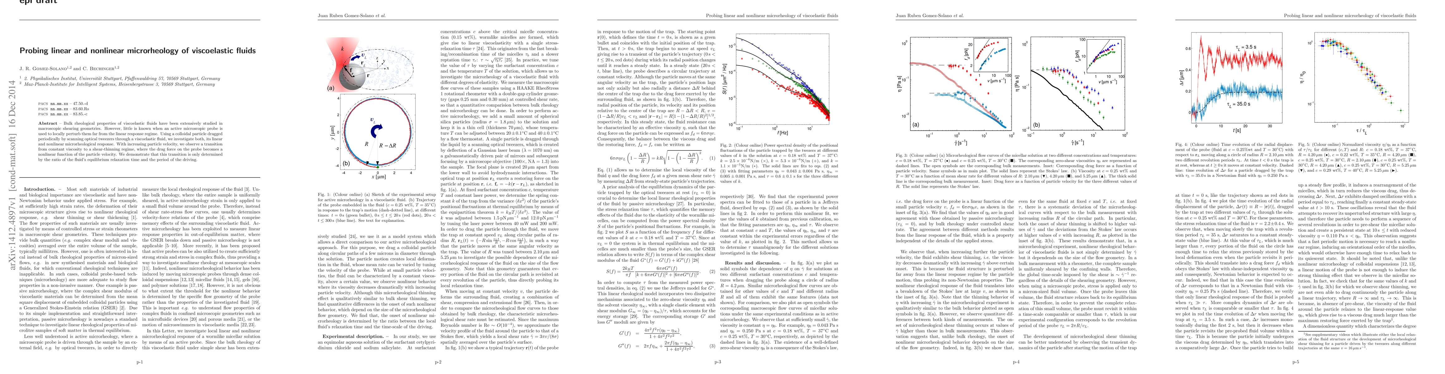 This study investigates the linear and nonlinear microrheology of viscoelastic fluids using a colloidal particle manipulated by scanning optical tweezers. It reveals a transition from constant to velocity-dependent viscosity, showing that this transition depends on the ratio of the fluid's relaxation time to the driving period.