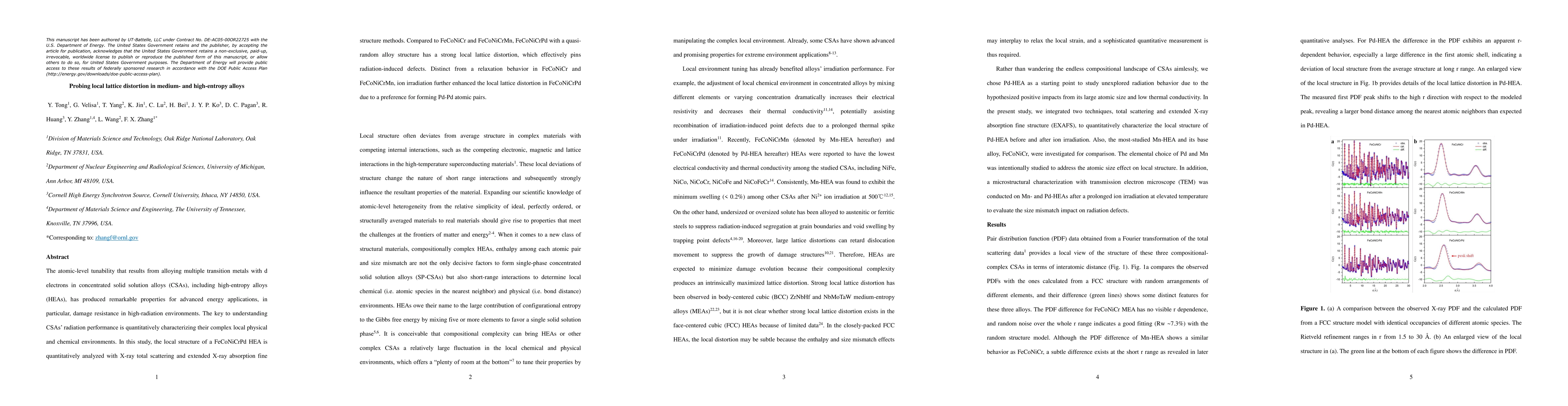The paper presents a comprehensive analysis of local lattice distortion in medium- and high-entropy alloys using advanced X-ray scattering techniques, providing insights into their radiation performance.