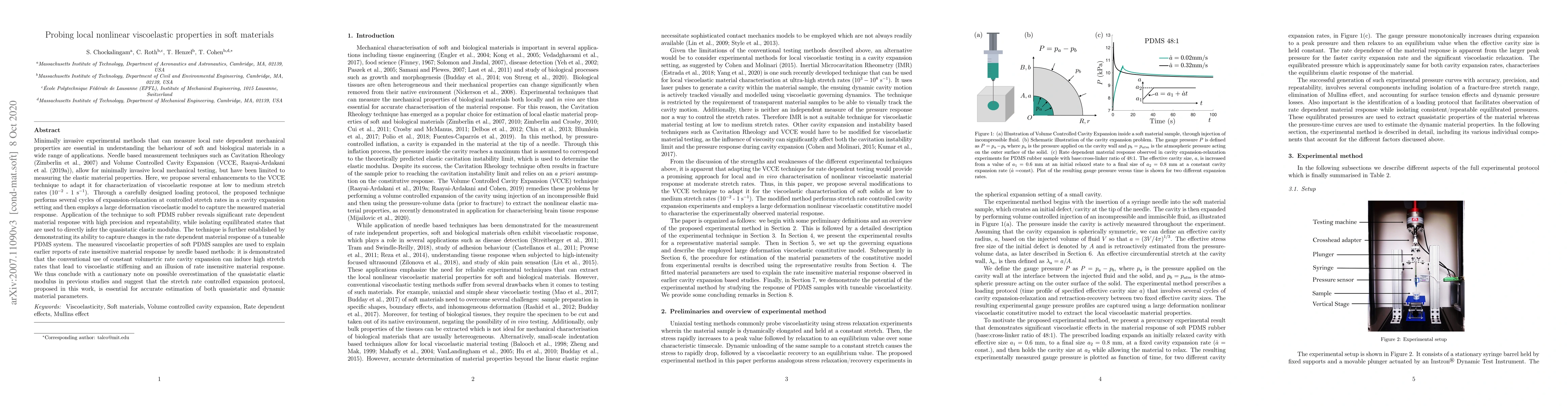 This paper proposes enhancements to the Volume Controlled Cavity Expansion technique to measure local viscoelastic properties in soft materials at low to medium stretch rates. The new method captures rate-dependent material responses in PDMS rubber, revealing significant viscoelastic effects and improving the precision of quasistatic elastic modulus estimation, while cautioning against previous overestimations due to high stretch rates in conventional methods.