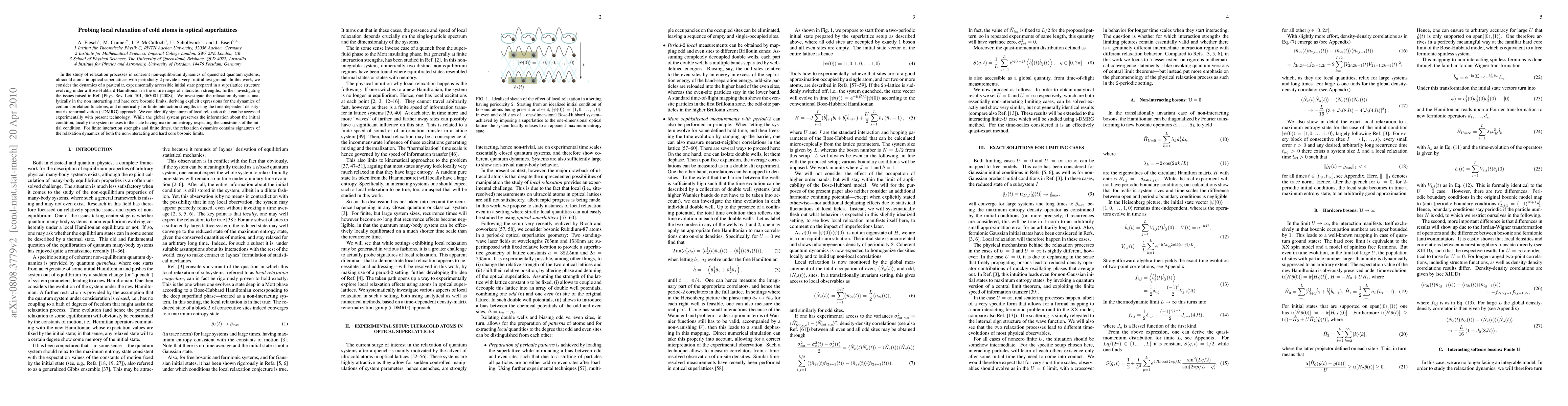 This paper investigates the relaxation dynamics of ultracold atoms in optical superlattices under a Bose-Hubbard Hamiltonian, identifying signatures of local relaxation that can be experimentally observed. Analytical and numerical methods reveal that while the system globally retains initial information, locally it relaxes to a state of maximum entropy.