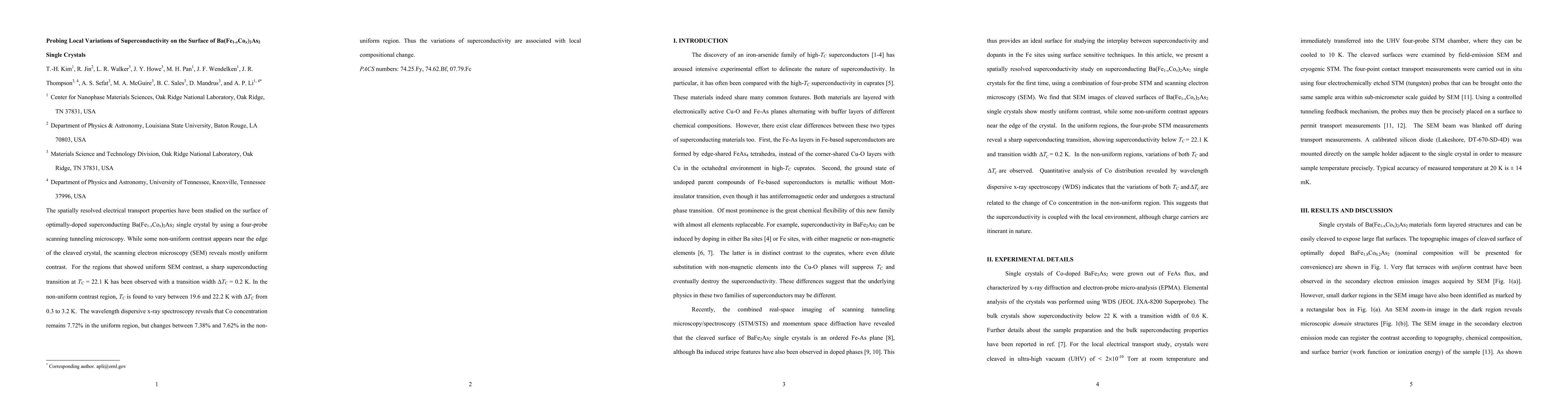 Researchers studied superconducting Ba(Fe1-xCox)2As2 crystals using scanning tunneling microscopy, finding localized variations in superconductivity linked to compositional changes.