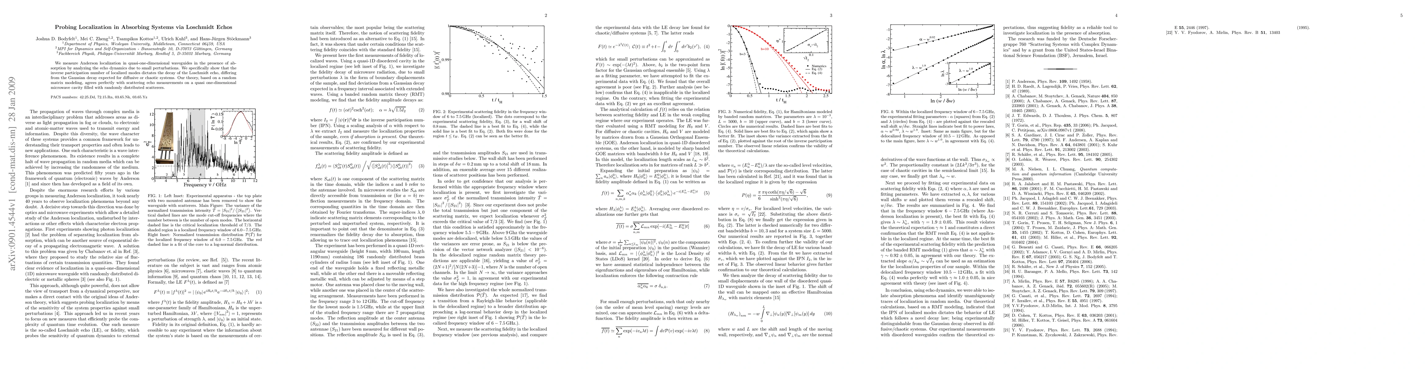 We measure Anderson localization in quasi-one-dimensional waveguides in the presence of absorption by analyzing the echo dynamics due to small perturbations. We specifically show that the inverse participation number of localized modes dictates the decay of the Loschmidt echo, differing from the Gaussian decay expected for diffusive or chaotic systems. Our theory, based on a random matrix modeling, agrees perfectly with scattering echo measurements on a quasi one-dimensional microwave cavity filled with randomly distributed scatterers.