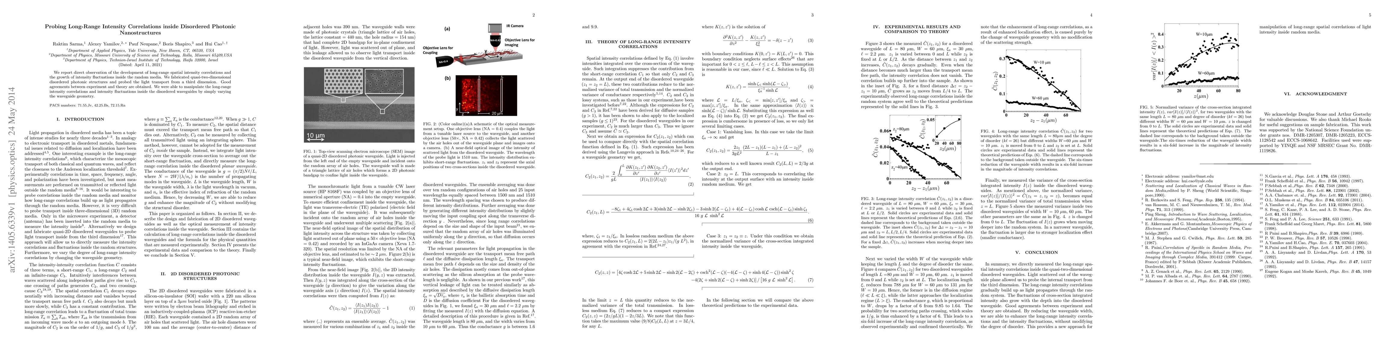 We report direct observation of the development of long-range spatial intensity correlations and the growth of intensity fluctuations inside the random media. We fabricated quasi-two-dimensional disordered photonic structures and probed the light transport from a third dimension. Good agreements between experiment and theory are obtained. We were able to manipulate the long-range intensity correlations and intensity fluctuations inside the disordered waveguides by simply varying the waveguide geometry.