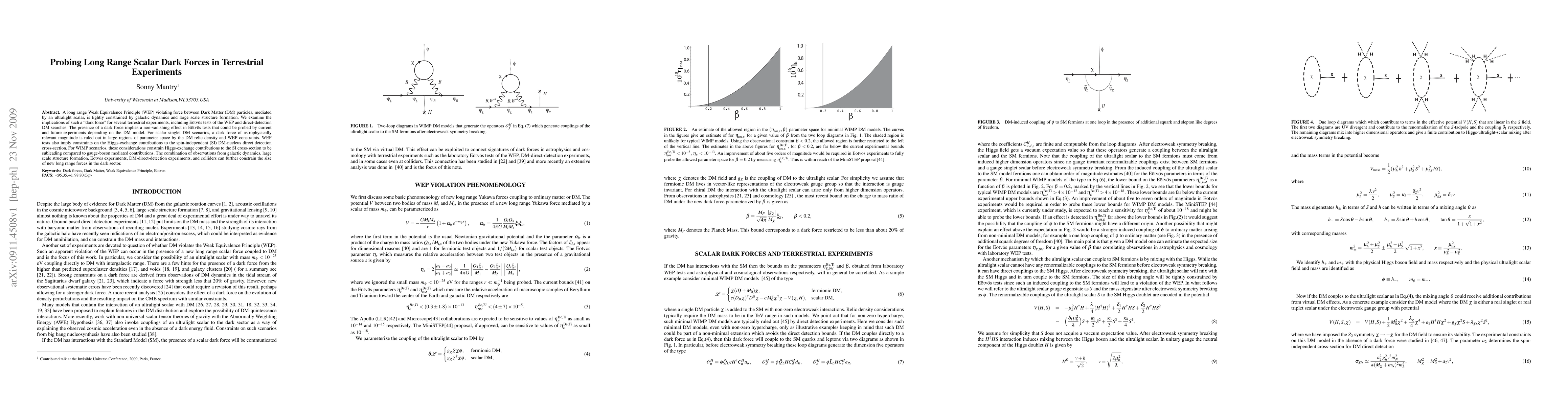 This paper investigates the implications of a long-range scalar dark force violating the Weak Equivalence Principle (WEP) for terrestrial experiments, including Eötvös tests and direct dark matter detection. It finds that such forces are constrained by galactic dynamics and WEP tests, with significant implications for future experimental sensitivities.