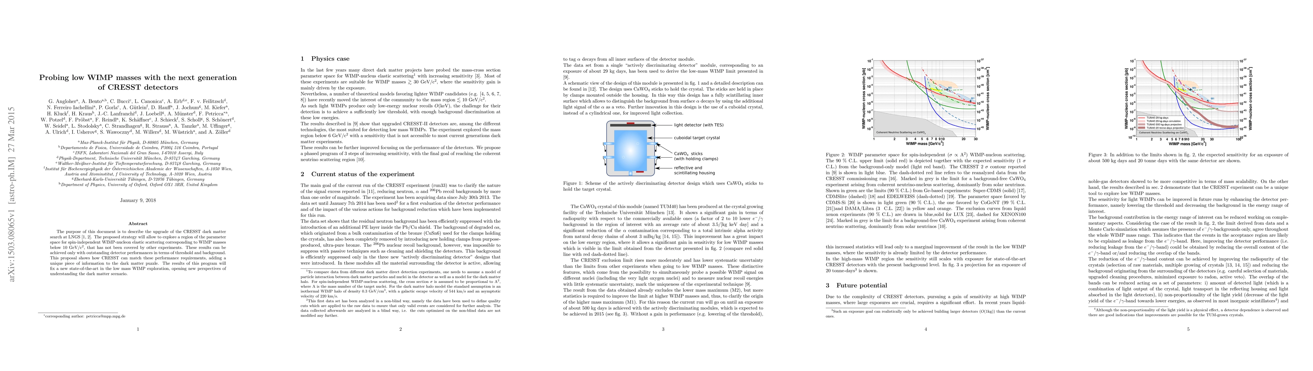 The purpose of this document is to describe the upgrade of the CRESST dark matter search at LNGS. The proposed strategy will allow to explore a region of the parameter space for spin-independent WIMP-nucleon elastic scattering corresponding to WIMP masses below 10GeV/c$^\text{2}$, that has not been covered by other experiments. These results can be achieved only with outstanding detector performances in terms of threshold and background. This proposal shows how CRESST can match these performance requirements, adding a unique piece of information to the dark matter puzzle. The results of this program will fix a new state-of-the-art in the low mass WIMP exploration, opening new perspectives of understanding the dark matter scenario.