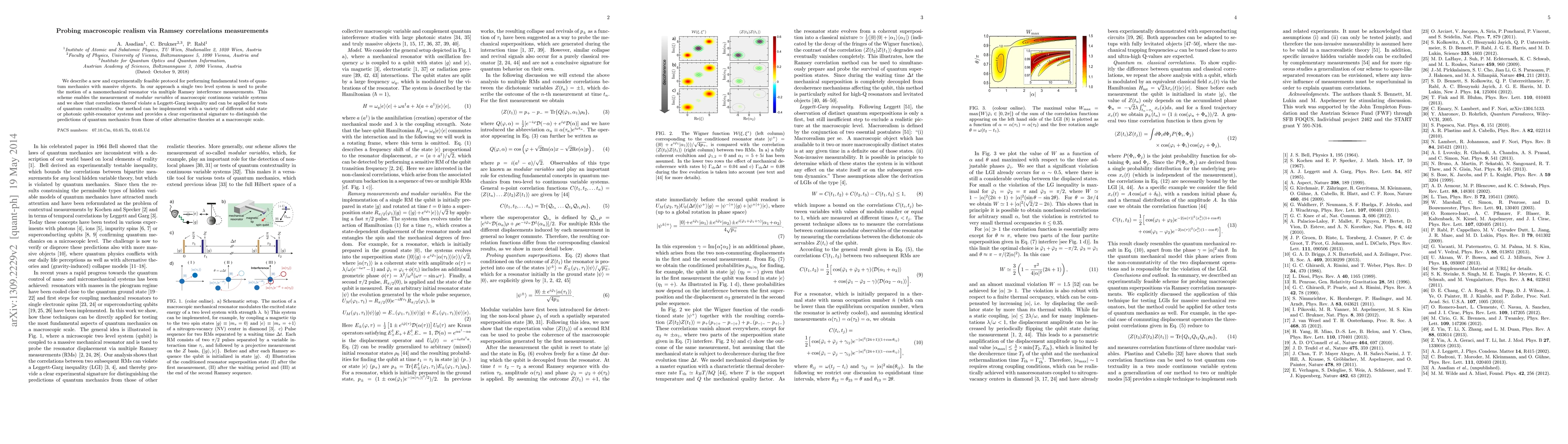 This paper proposes a novel protocol to test macroscopic realism using Ramsey interference measurements on a nanomechanical resonator, demonstrating quantum contextuality and violations of the Leggett-Garg inequality, and providing a clear experimental distinction between quantum mechanics and alternative theories. The method is adaptable to various solid-state or photonic systems.