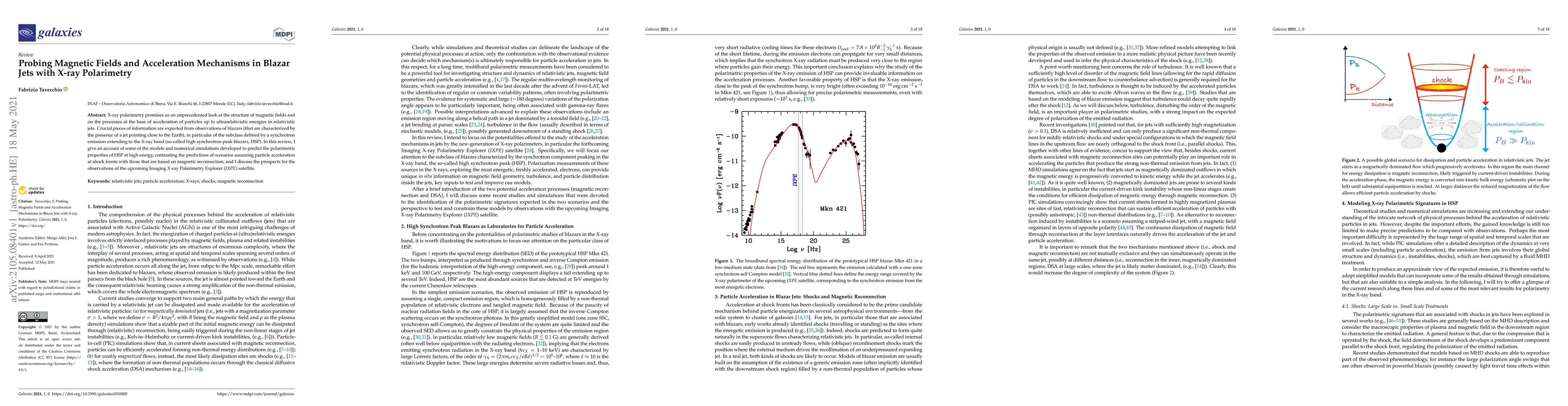 A review discusses blazar jets and X-ray polarimetry to understand magnetic fields and particle acceleration mechanisms at high energies. The study explores different models for predicting polarimetric properties of high synchrotron peak blazars using upcoming satellite IXPE observations.