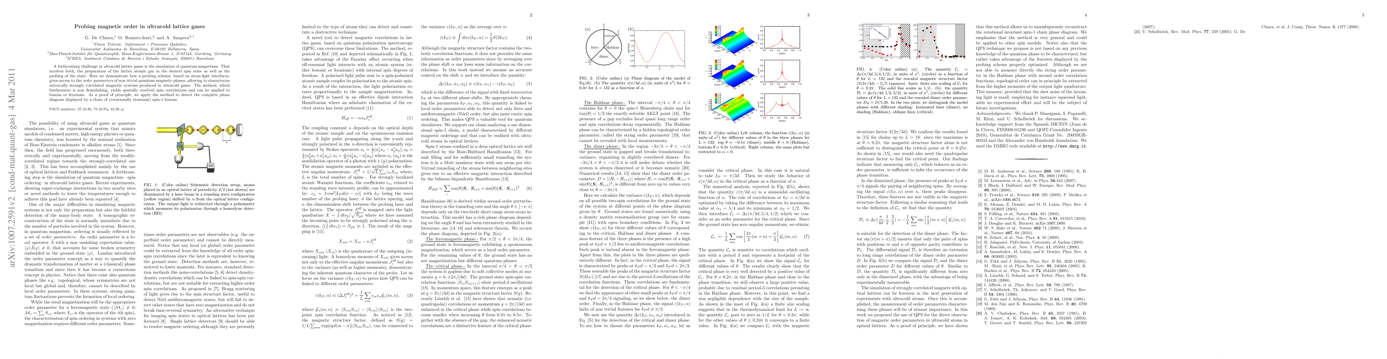 A forthcoming challenge in ultracold lattice gases is the simulation of quantum magnetism. That involves both the preparation of the lattice atomic gas in the desired spin state and the probing of the state. Here we demonstrate how a probing scheme based on atom-light interfaces gives access to the order parameters of nontrivial quantum magnetic phases, allowing us to characterize univocally strongly correlated magnetic systems produced in ultracold gases. This method, which is also nondemolishing, yields spatially resolved spin correlations and can be applied to bosons or fermions. As a proof of principle, we apply this method to detect the complete phase diagram displayed by a chain of (rotationally invariant) spin-1 bosons.