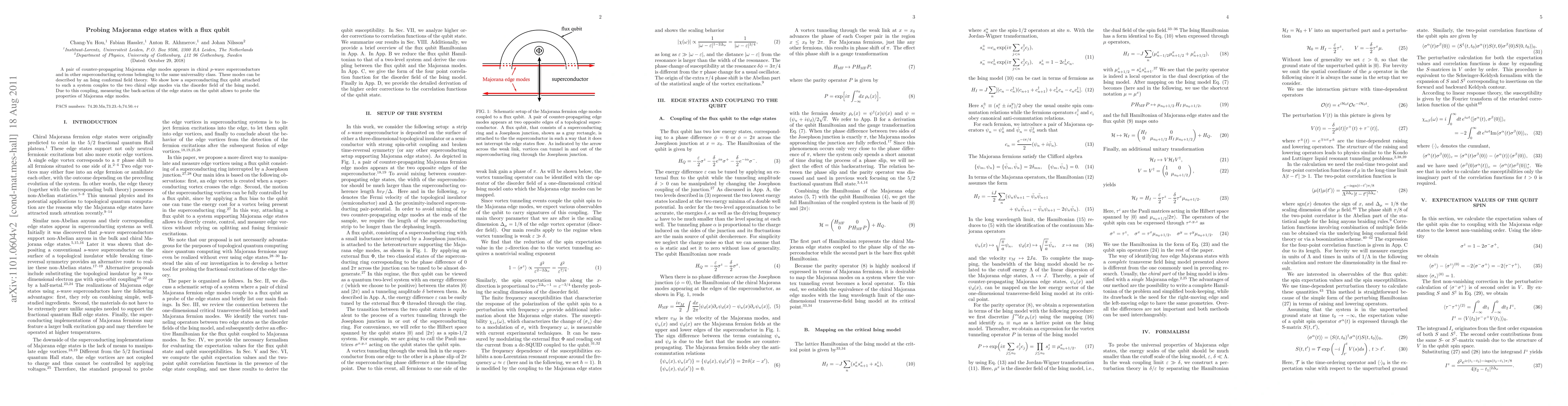 A pair of counter-propagating Majorana edge modes appears in chiral p-wave superconductors and in other superconducting systems belonging to the same universality class. These modes can be described by an Ising conformal field theory. We show how a superconducting flux qubit attached to such a system couples to the two chiral edge modes via the disorder field of the Ising model. Due to this coupling, measuring the back-action of the edge states on the qubit allows to probe the properties of Majorana edge modes.