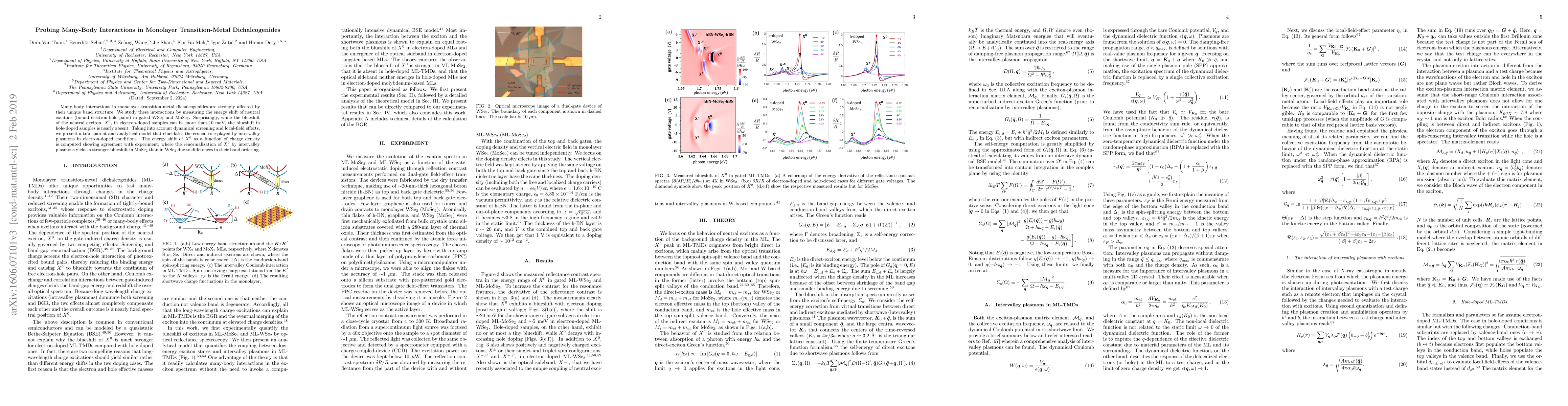 This paper investigates many-body interactions in monolayer transition-metal dichalcogenides through exciton energy shifts in gated WSe$_2$ and MoSe$_2$, revealing significant blueshift differences between electron- and hole-doped conditions. An analytical model explains the role of intervalley plasmons in electron doping, correlating the stronger blueshift in MoSe$_2$ to its distinct band structure.