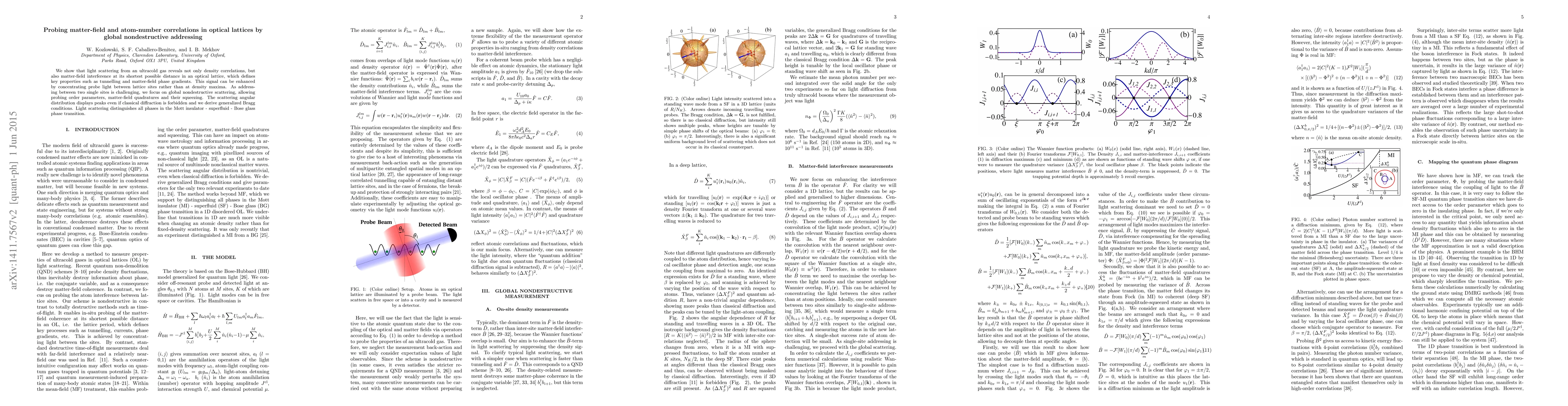 We show that light scattering from an ultracold gas reveals not only density correlations, but also matter-field interference at its shortest possible distance in an optical lattice, which defines key properties such as tunneling and matter-field phase gradients. This signal can be enhanced by concentrating probe light between lattice sites rather than at density maxima. As addressing between two single sites is challenging, we focus on global nondestructive scattering, allowing probing order parameters, matter-field quadratures and their squeezing. The scattering angular distribution displays peaks even if classical diffraction is forbidden and we derive generalized Bragg conditions. Light scattering distinguishes all phases in the Mott insulator - superfluid - Bose glass phase transition.