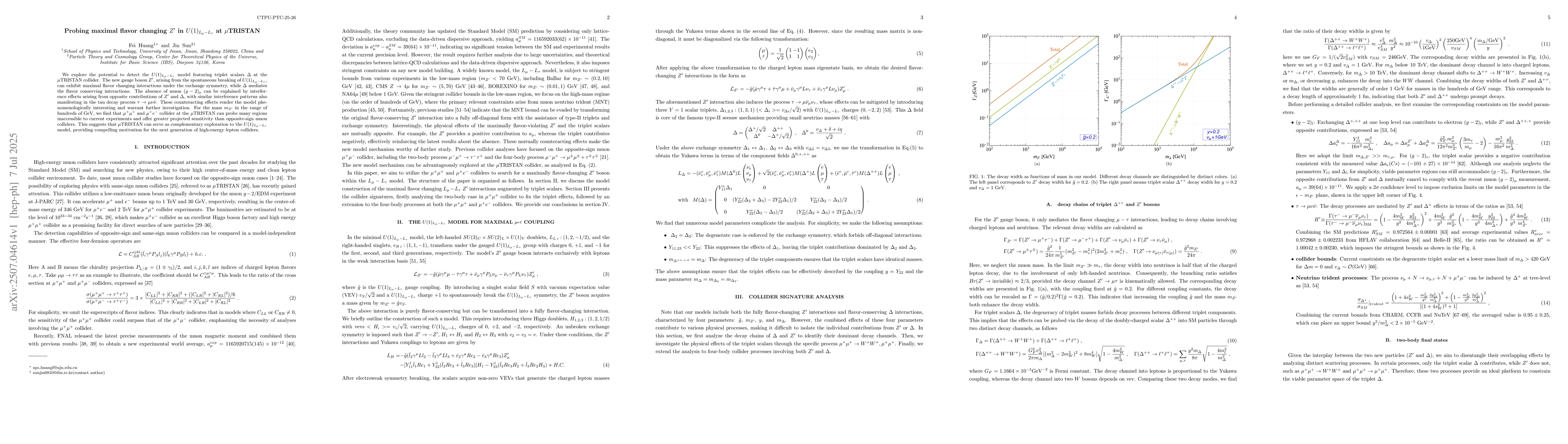 We explore the potential to detect the $U(1)_{L_\mu-L_\tau}$ model featuring triplet scalars $\Delta$ at the $\mu$TRISTAN collider. The new gauge boson $Z'$, arising from the spontaneous breaking of $U(1)_{L_\mu-L_\tau}$, can exhibit maximal flavor changing interactions under the exchange symmetry, while $\Delta$ mediates the flavor conserving interactions. The absence of muon $(g-2)_\mu$ can be explained by interference effects arising from opposite contributions of $Z'$ and $\Delta$, with similar interference patterns also manifesting in the tau decay process $\tau\to \mu\nu\bar\nu$. These counteracting effects render the model phenomenologically interesting and warrant further investigation. For the mass $m_{Z'}$ in the range of hundreds of GeV, we find that $\mu^+\mu^+$ and $\mu^+e^-$ collider at the $\mu$TRISTAN can probe many regions inaccessible to current experiments and offer greater projected sensitivity than opposite-sign muon colliders. This suggests that $\mu$TRISTAN can serve as complementary exploration to the $U(1)_{L_\mu-L_\tau}$ model, providing compelling motivation for the next generation of high-energy lepton colliders.
