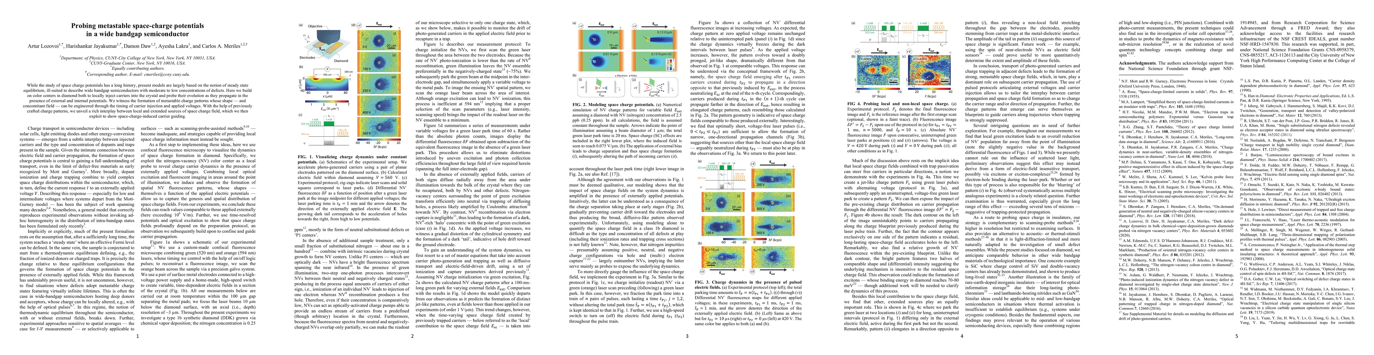 This paper investigates metastable space-charge potentials in wide bandgap semiconductors, focusing on diamond with color centers. It demonstrates the formation of engineered, metastable charge patterns through carrier injection timing and applied voltages, revealing complex interactions between local and extended space charge fields and enabling carrier guiding.