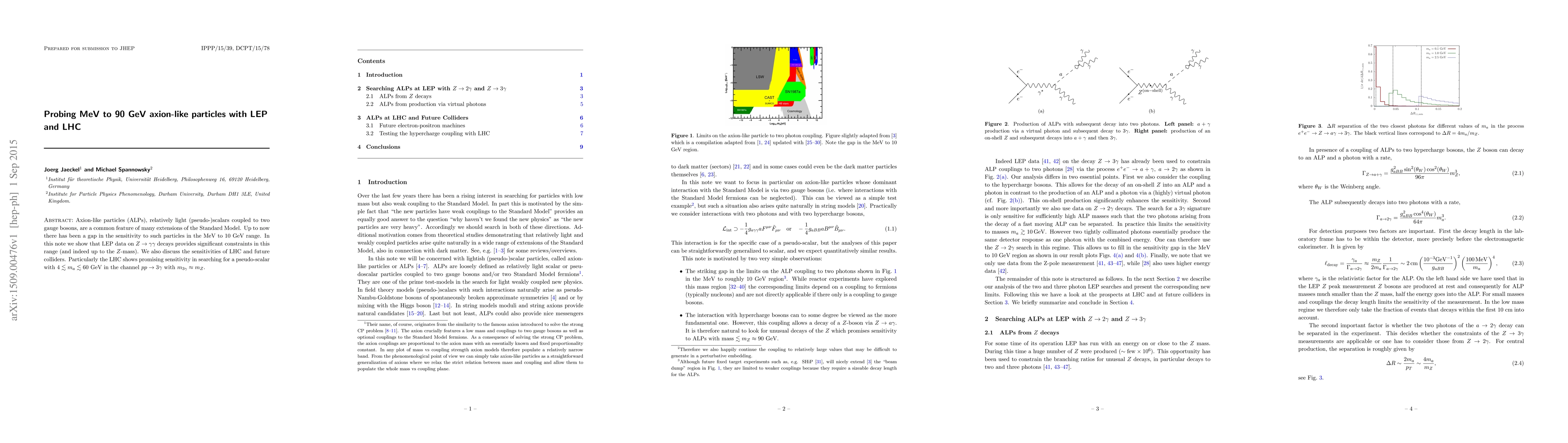 Axion-like particles (ALPs), relatively light (pseudo-)scalars coupled to two gauge bosons, are a common feature of many extensions of the Standard Model. Up to now there has been a gap in the sensitivity to such particles in the MeV to 10 GeV range. In this note we show that LEP data on $Z\to\gamma\gamma$ decays provides significant constraints in this range (and indeed up to the $Z$-mass). We also discuss the sensitivities of LHC and future colliders. Particularly the LHC shows promising sensitivity in searching for a pseudo-scalar with $4 \lesssim m_a \lesssim 60$ GeV in the channel $pp \to 3 \gamma$ with $m_{3\gamma}\approx m_{Z}$.