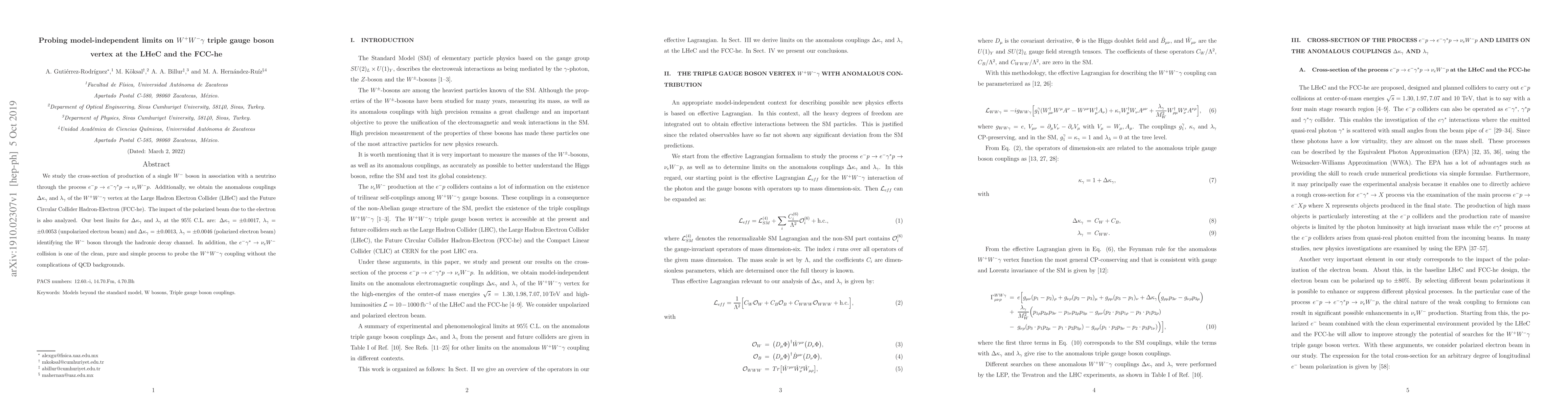 Researchers at the LHeC and FCC-he studied the $W^+W^-eta$ triple gauge boson vertex, setting limits on anomalous couplings $eta$. The study aimed to investigate the coupling without QCD backgrounds, a clean process for understanding the interaction.