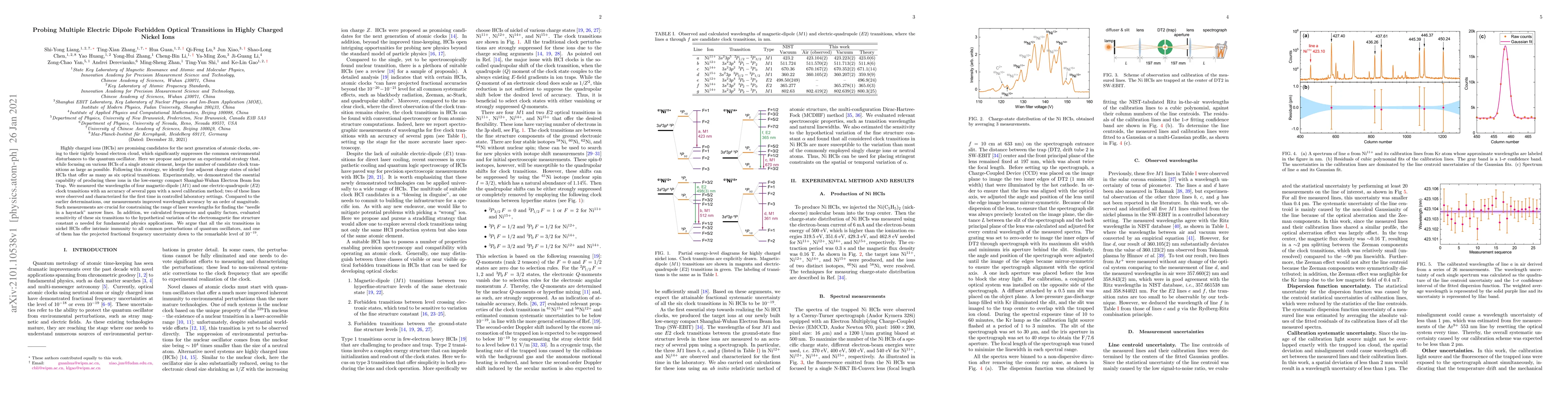 This paper explores multiple electric dipole forbidden optical transitions in highly charged nickel ions, aiming to identify potential candidates for atomic clocks. The authors identified six optical transitions in four nickel ion charge states, measured their wavelengths with high precision, and demonstrated their immunity to common perturbations, projecting one transition to have a fractional frequency uncertainty of 10$^{-19}$.