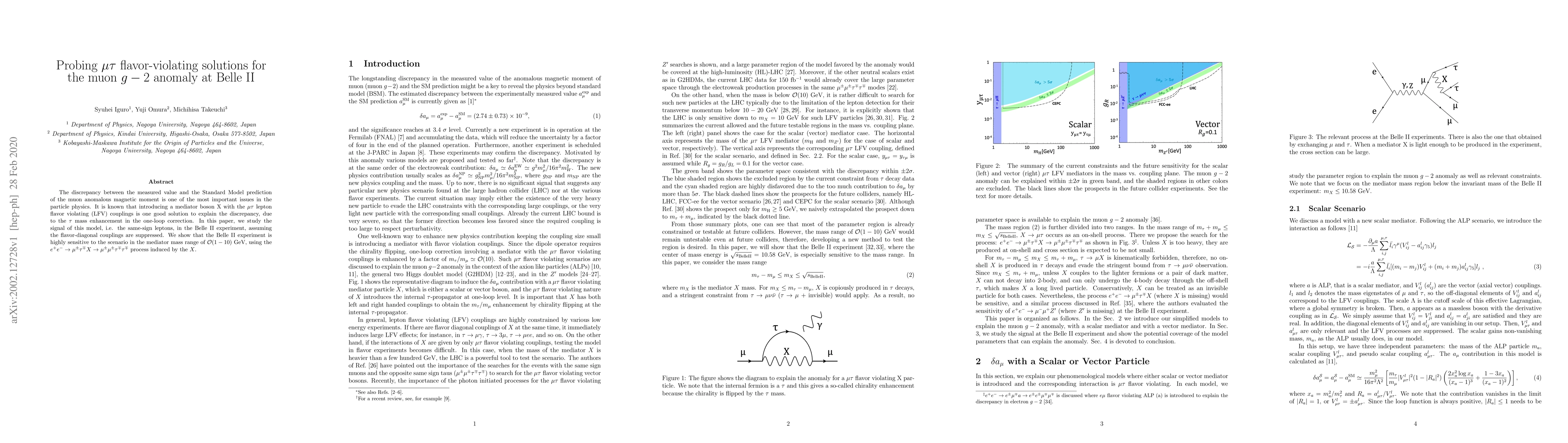 The discrepancy between the measured value and the Standard Model prediction of the muon anomalous magnetic moment is one of the most important issues in the particle physics. It is known that introducing a mediator boson X with the $\mu \tau$ lepton flavor violating (LFV) couplings is one good solution to explain the discrepancy, due to the $\tau$ mass enhancement in the one-loop correction. In this paper, we study the signal of this model, i.e. the same-sign leptons, in the Belle II experiment, assuming the flavor-diagonal couplings are suppressed. We show that the Belle II experiment is highly sensitive to the scenario in the mediator mass range of ${\cal O}(1-10)$~GeV, using the $e^+e^- \to \mu^\pm\tau^\mp X \to\mu^\pm \mu^\pm \tau^\mp \tau^\mp$ process induced by the $X$.