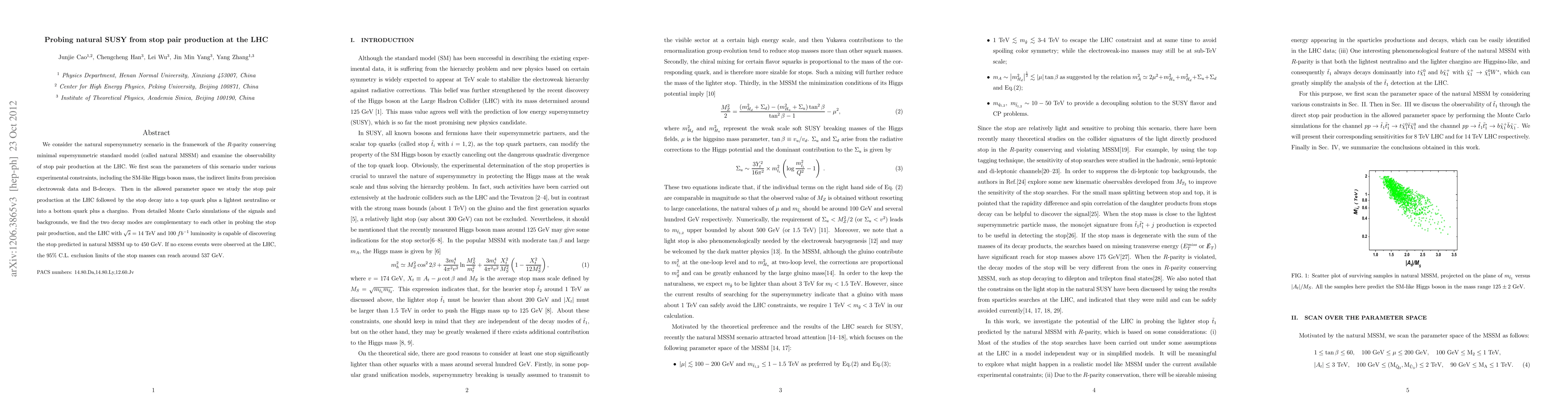 The research methodology involves scanning the natural SUSY parameter space under various experimental constraints, including the SM-like Higgs boson mass, precision electroweak data, and B-decays. It then examines stop pair production at the LHC, focusing on stop decays into top quark plus lightest neutralino or bottom quark plus chargino, using Monte Carlo simulations for signals and backgrounds.