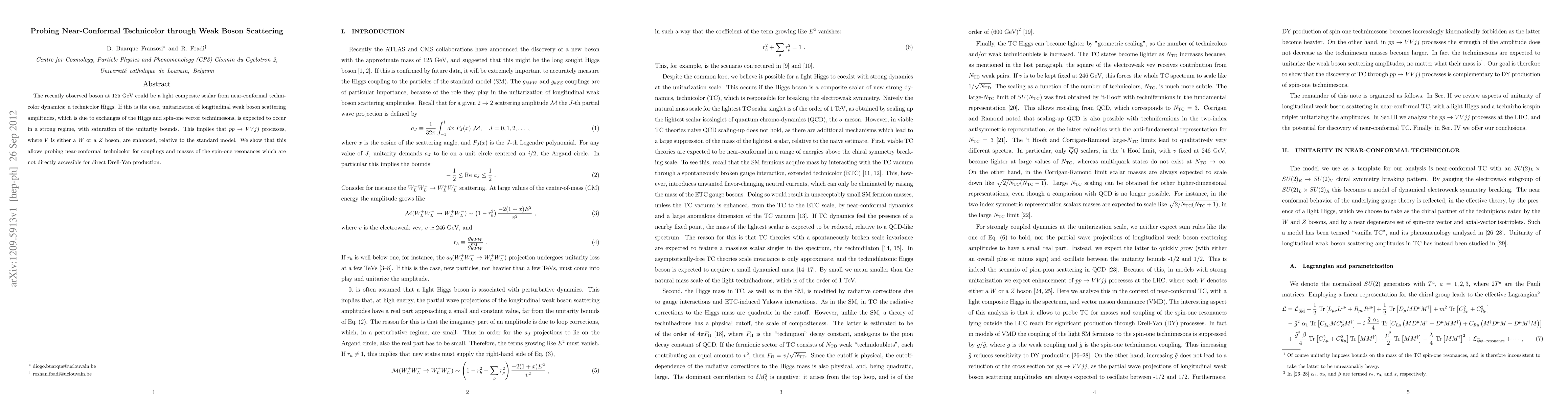 This paper explores how near-conformal technicolor dynamics could explain the 125 GeV boson as a technicolor Higgs, enhancing $pp \to V V jj$ processes. It proposes that this enhancement allows probing technicolor through weak boson scattering, even for spin-one resonances not directly accessible via Drell-Yan production.