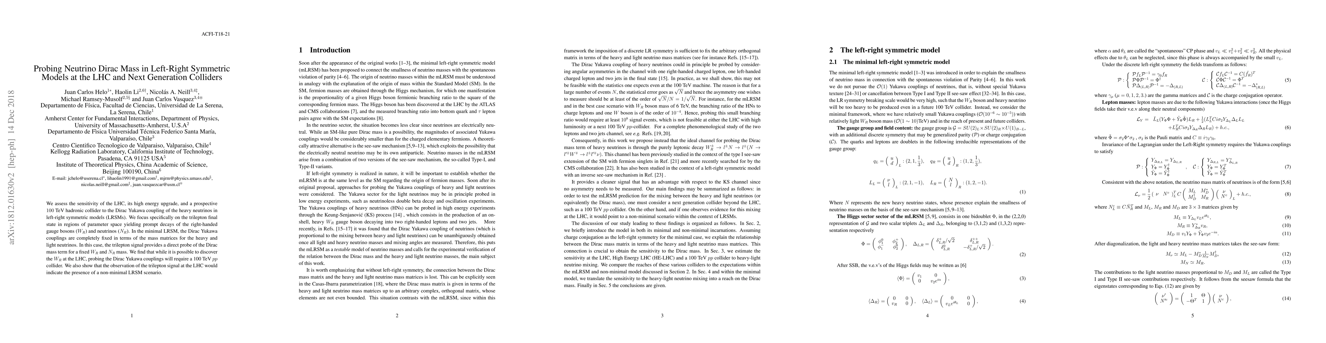 We assess the sensitivity of the LHC, its high energy upgrade, and a prospective 100 TeV hadronic collider to the Dirac Yukawa coupling of the heavy neutrinos in left-right symmetric models (LRSMs). We focus specifically on the trilepton final state in regions of parameter space yielding prompt decays of the right-handed gauge bosons ($W_R$) and neutrinos ($N_R$). In the minimal LRSM, the Dirac Yukawa couplings are completely fixed in terms of the mass matrices for the heavy and light neutrinos. In this case, the trilepton signal provides a direct probe of the Dirac mass term for a fixed $W_R$ and $N_R$ mass. We find that while it is possible to discover the $W_R$ at the LHC, probing the Dirac Yukawa couplings will require a 100 TeV $pp$ collider. We also show that the observation of the trilepton signal at the LHC would indicate the presence of a non-minimal LRSM scenario.