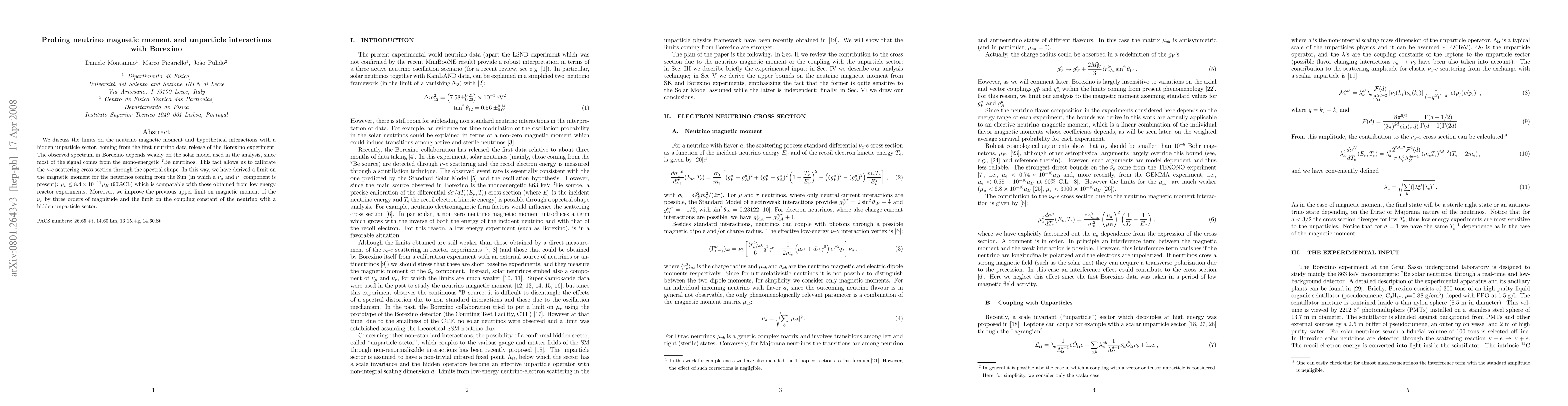 Summary: The Borexino experiment provides new limits on the neutrino magnetic moment and interactions with a hidden unparticle sector, achieving a stringent upper bound of μ_ν<8.4E-11 μ_B for solar neutrinos and significantly improving the limits on the ν_tau magnetic moment and the coupling constant with unparticles.