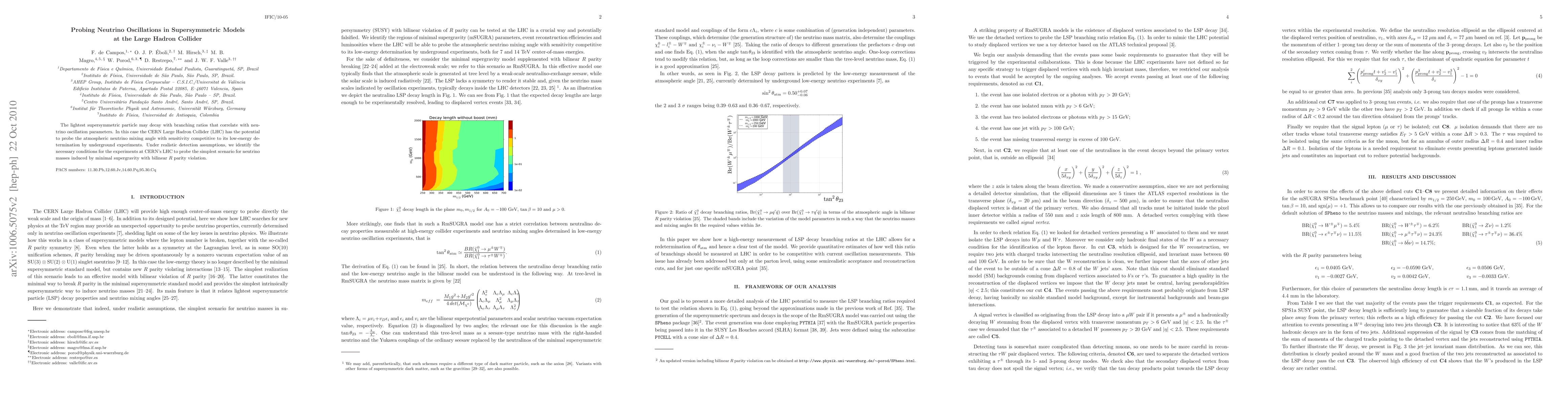 This paper explores how the Large Hadron Collider (LHC) can investigate neutrino oscillations in supersymmetric models, particularly focusing on the potential to determine the atmospheric neutrino mixing angle through the decay of the lightest supersymmetric particle. It outlines the necessary conditions for the LHC to achieve sensitivity comparable to low-energy underground experiments.