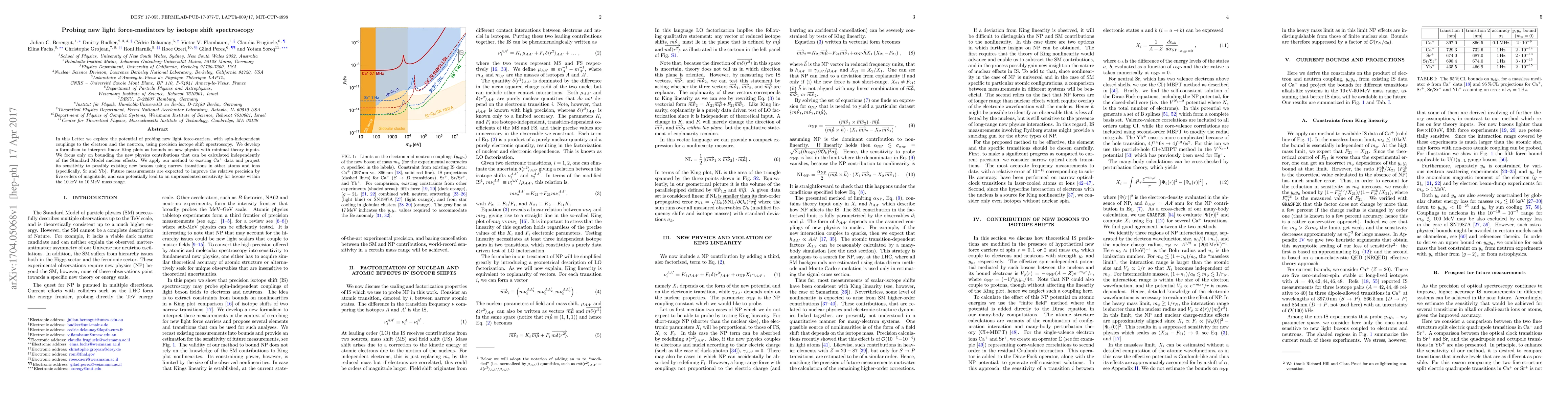 The research uses precision isotope shift spectroscopy to probe new light force-carriers with spin-independent couplings.