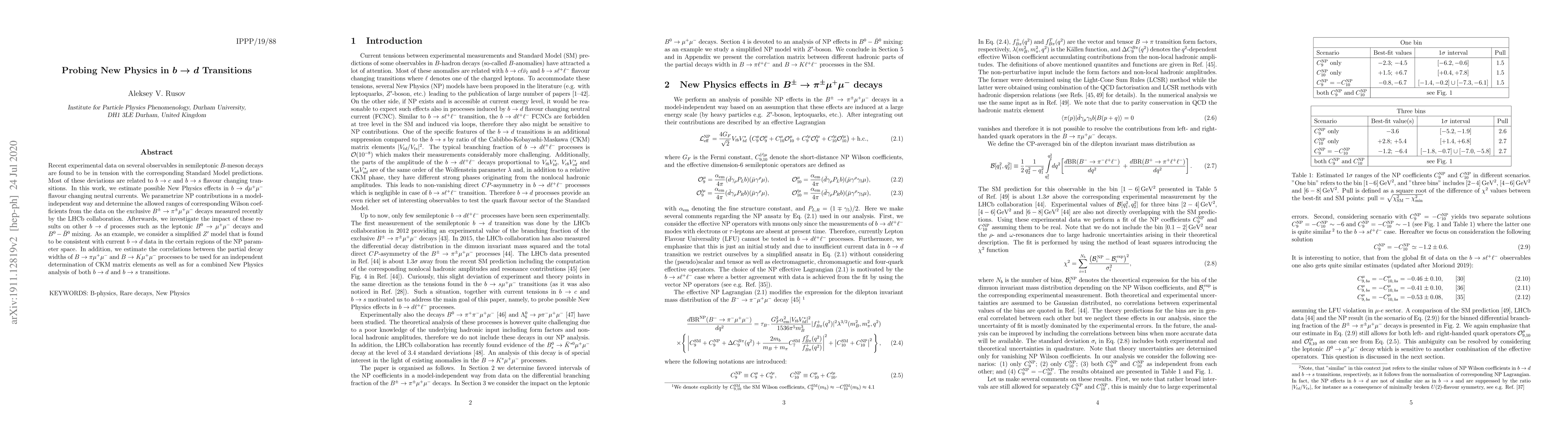 This paper investigates possible New Physics effects in $b \to d$ transitions, particularly in $B$-meson decays, using recent LHCb data. It determines the allowed ranges of Wilson coefficients and examines their implications for other $b \to d$ processes, including a simplified $Z^\prime$ model, and estimates correlations between decay widths for CKM matrix element determination.