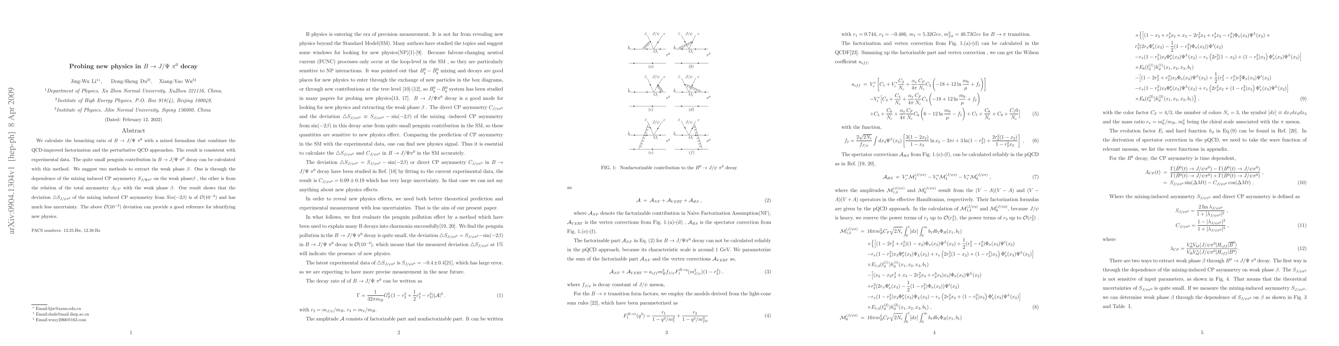 Researchers investigate $B o J/\Psii^0$ decay using a mixed formalism, finding results consistent with experimental data and proposing methods to extract the weak phase $eta$. The study suggests that small deviations in CP asymmetry can be used to identify new physics.