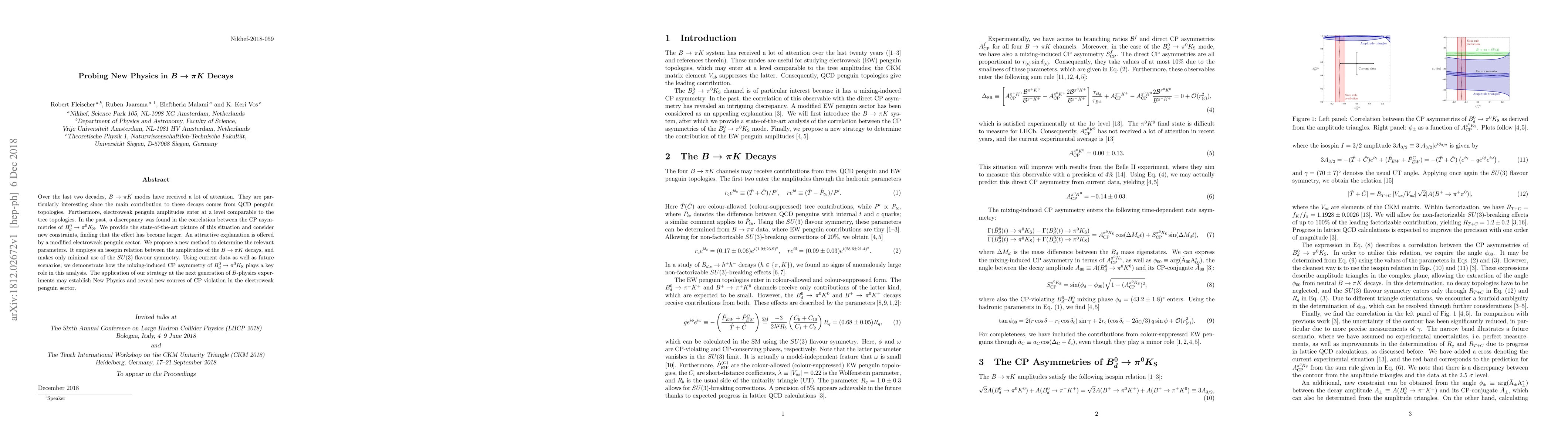 Over the last two decades, $B \to \pi K$ modes have received a lot of attention. They are particularly interesting since the main contribution to these decays comes from QCD penguin topologies. Furthermore, electroweak penguin amplitudes enter at a level comparable to the tree topologies. In the past, a discrepancy was found in the correlation between the CP asymmetries of $B_d^0 \to \pi^0 K_{\rm S}$. We provide the state-of-the-art picture of this situation and consider new constraints, finding that the effect has become larger. An attractive explanation is offered by a modified electroweak penguin sector. We propose a new method to determine the relevant parameters. It employs an isospin relation between the amplitudes of the $B \to \pi K$ decays, and makes only minimal use of the $SU(3)$ flavour symmetry. Using current data as well as future scenarios, we demonstrate how the mixing-induced CP asymmetry of $B_d^0 \to \pi^0 K_{\rm S}$ plays a key role in this analysis. The application of our strategy at the next generation of $B$-physics experiments may establish New Physics and reveal new sources of CP violation in the electroweak penguin sector.