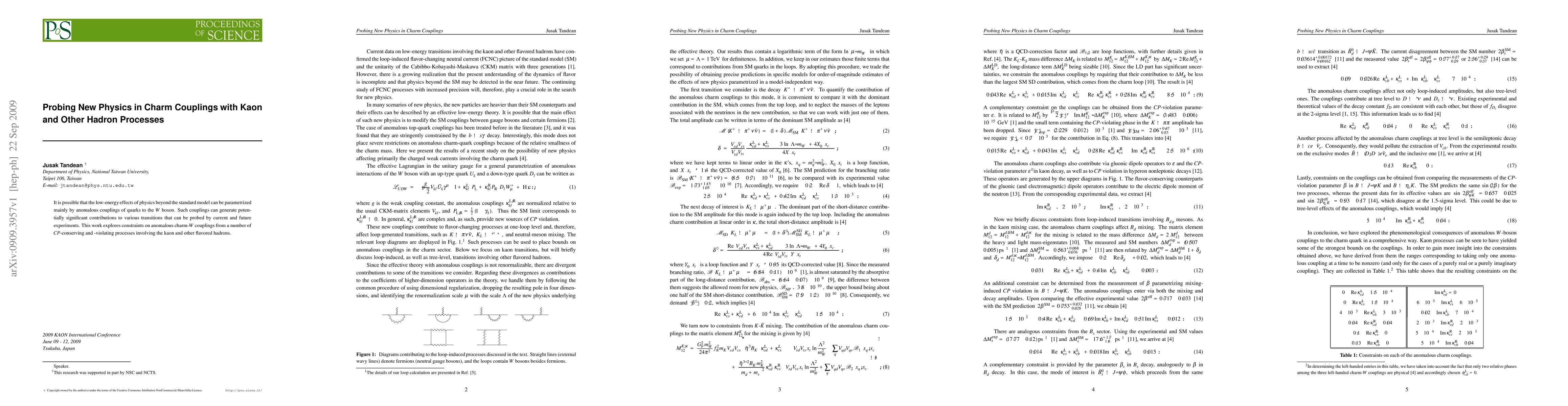 It is possible that the low-energy effects of physics beyond the standard model can be parametrized mainly by anomalous couplings of quarks to the W boson. Such couplings can generate potentially significant contributions to various transitions that can be probed by current and future experiments. This work explores constraints on anomalous charm-W couplings from a number of CP-conserving and -violating processes involving the kaon and other flavored hadrons.