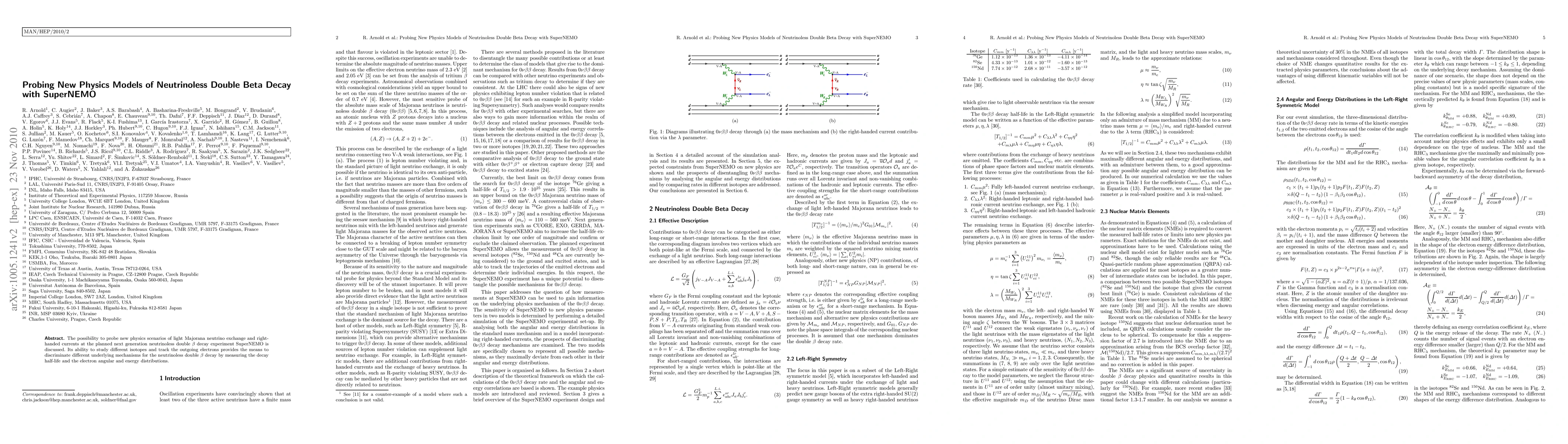 The possibility to probe new physics scenarios of light Majorana neutrino exchange and right-handed currents at the planned next generation neutrinoless double beta decay experiment SuperNEMO is discussed. Its ability to study different isotopes and track the outgoing electrons provides the means to discriminate different underlying mechanisms for the neutrinoless double beta decay by measuring the decay half-life and the electron angular and energy distributions.