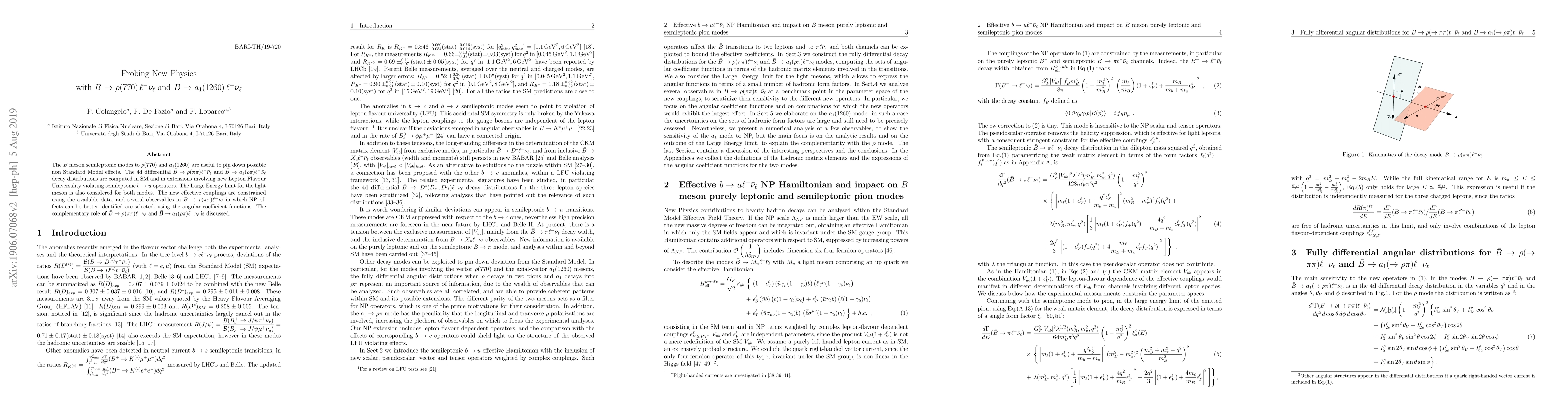 This paper investigates the semileptonic decays of $ \bar B$ mesons into $\rho(770)$ and $a_1(1260)$ to detect potential non-Standard Model physics. It computes decay distributions in both the Standard Model and models with new Lepton Flavour Universality violating operators, constraining new effective couplings with available data and identifying observables that highlight new physics effects.