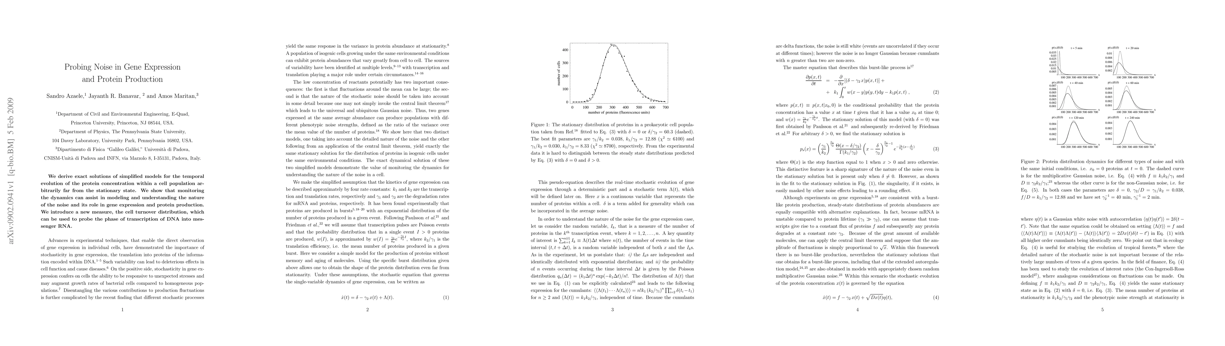 We derive exact solutions of simplified models for the temporal evolution of the protein concentration within a cell population arbitrarily far from the stationary state. We show that monitoring the dynamics can assist in modeling and understanding the nature of the noise and its role in gene expression and protein production. We introduce a new measure, the cell turnover distribution, which can be used to probe the phase of transcription of DNA into messenger RNA.