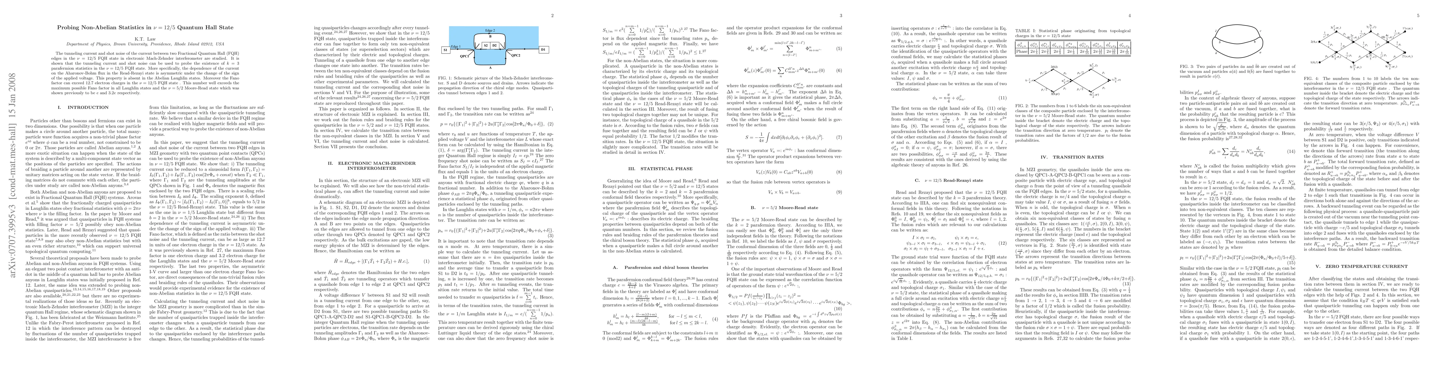 This paper investigates the tunneling current and shot noise in the $\nu=12/5$ Fractional Quantum Hall state, demonstrating the existence of non-Abelian statistics through asymmetric current dependence on Aharonov-Bohm flux and a Fano factor exceeding 12.7 electron charges, unlike Abelian Laughlin states.