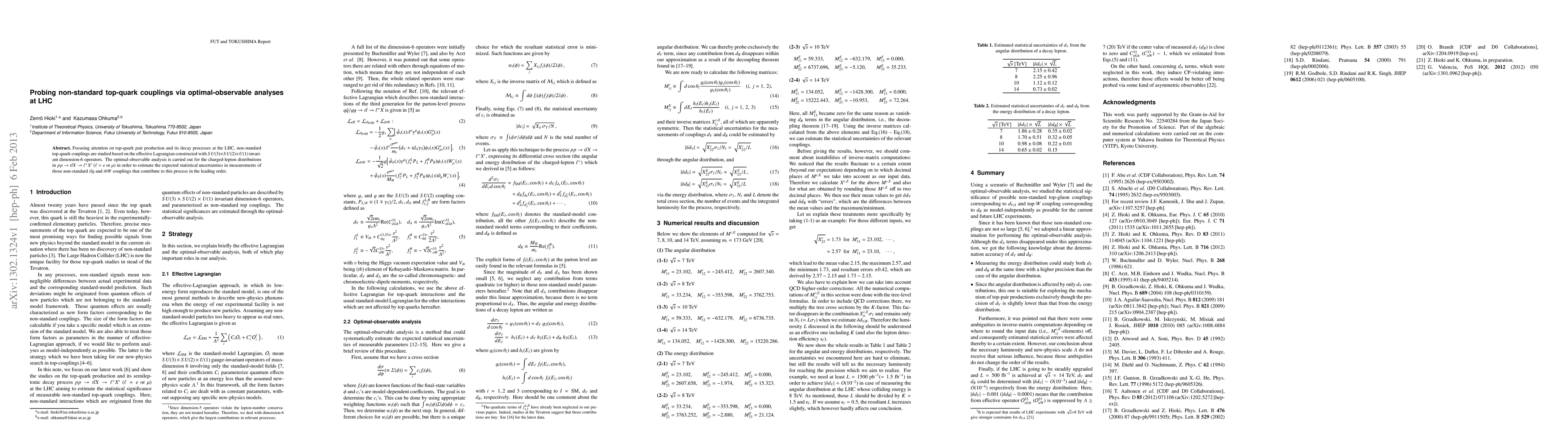 This paper investigates non-standard top-quark couplings in top-quark pair production at the LHC using effective Lagrangians and optimal-observable analyses. The study focuses on charged-lepton distributions to estimate uncertainties in non-standard tt-bar and tbW couplings.