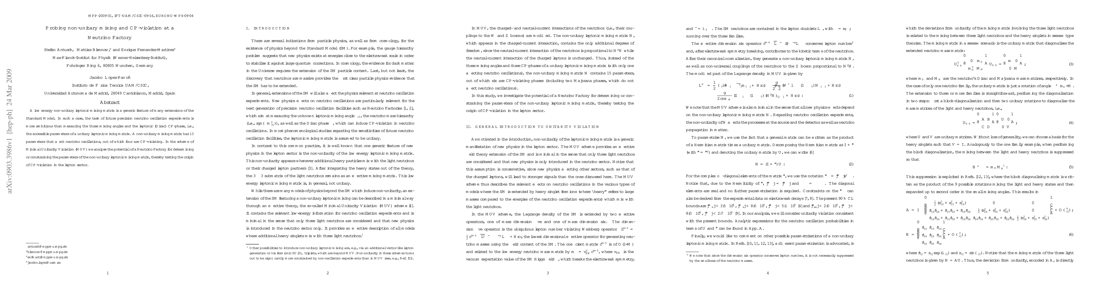 The paper investigates how a Neutrino Factory can determine or constrain the parameters of a low energy non-unitary leptonic mixing matrix, which extends beyond the Standard Model by introducing 13 parameters, four of which are CP-violating. The focus is on the Minimal Unitarity Violation scheme to test the origin of CP-violation in the lepton sector.