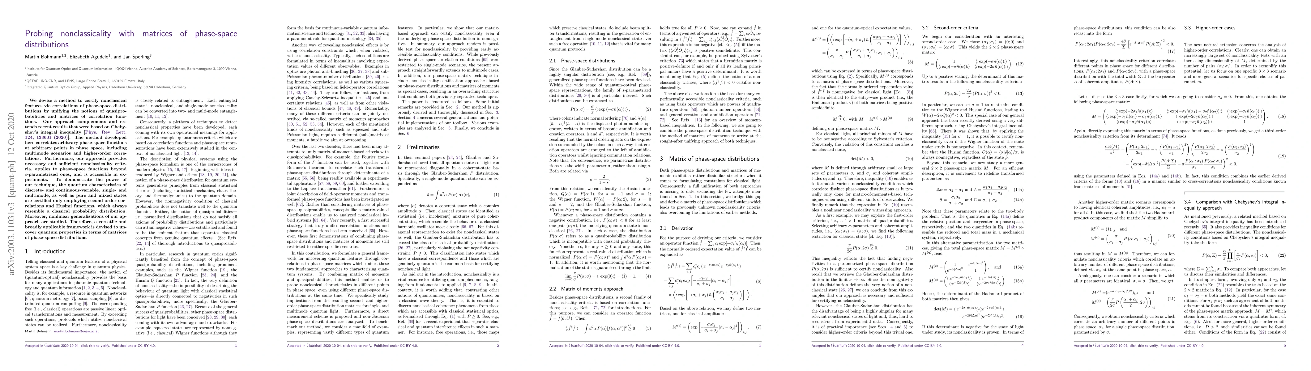This paper introduces a novel method to certify nonclassical features using matrices of phase-space distributions, extending beyond previous results based on Chebyshev's inequality. It provides necessary and sufficient criteria for nonclassicality, applicable to various quantum systems and higher-order correlations, and is experimentally accessible.