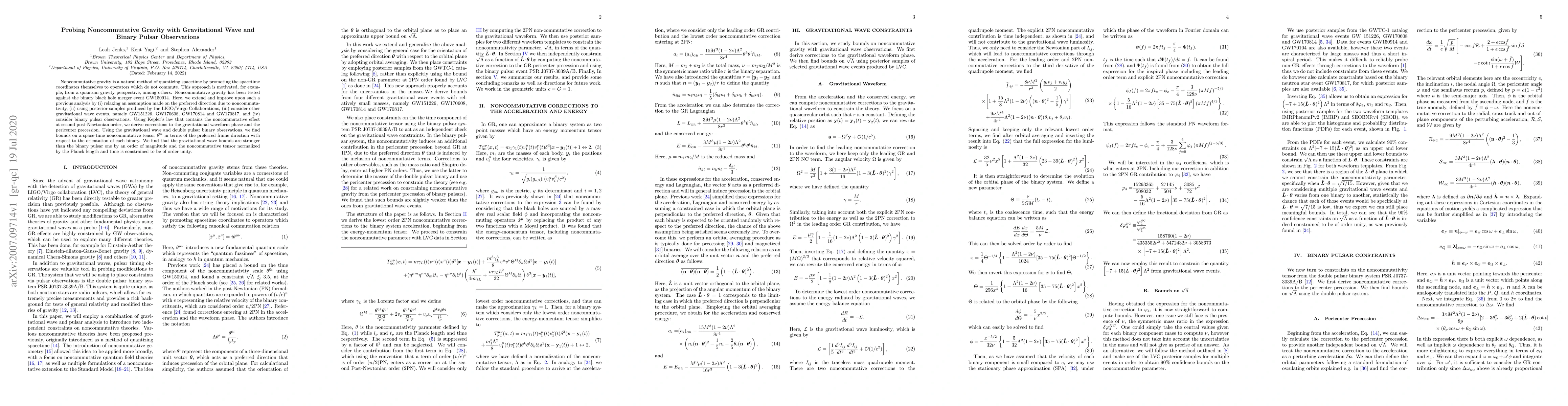 Noncommutative gravity is a natural method of quantizing spacetime by promoting the spacetime coordinates themselves to operators which do not commute. This approach is motivated, for example, from a quantum gravity perspective, among others. Noncommutative gravity has been tested against the binary black hole merger event GW150914. Here, we extend and improve upon such a previous analysis by (i) relaxing an assumption made on the preferred direction due to noncommutativity, (ii) using posterior samples produced by the LIGO/Virgo Collaborations, (iii) consider other gravitational wave events, namely GW151226, GW170608, GW170814 and GW170817, and (iv) consider binary pulsar observations. Using Kepler's law that contains the noncommutative effect at second post-Newtonian order, we derive corrections to the gravitational waveform phase and the pericenter precession. Using the gravitational wave and double pulsar binary observations, we find bounds on a space-time noncommutative tensor $\theta^{0i}$ in terms of the preferred frame direction with respect to the orientation of each binary. We find that the gravitational wave bounds are stronger than the binary pulsar one by an order of magnitude and the noncommutative tensor normalized by the Planck length and time is constrained to be of order unity.