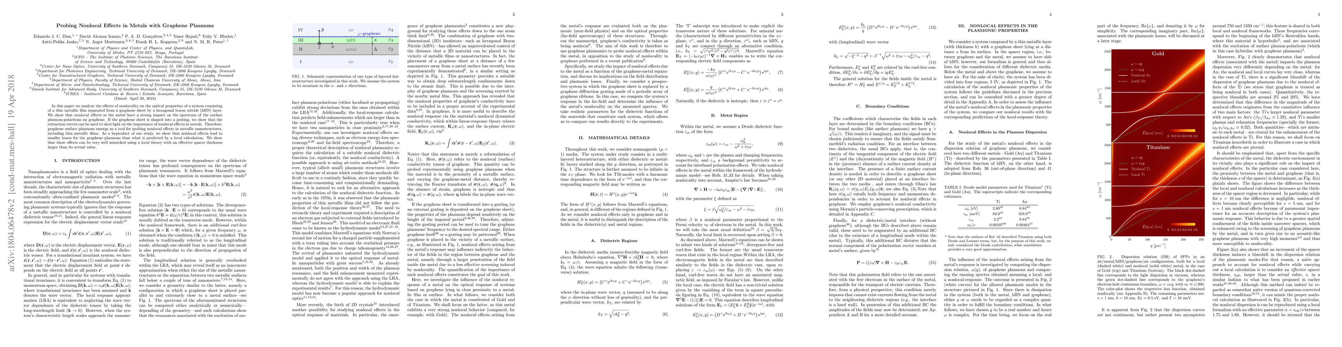 This research investigates how nonlocal effects in metals influence graphene plasmons, demonstrating that surface plasmon-polaritons on graphene are affected by nonlocality in thin metallic films. The study reveals that nonlocal effects lead to reduced losses in graphene plasmons and can be mimicked using a modified local theory with an increased effective spacer thickness.