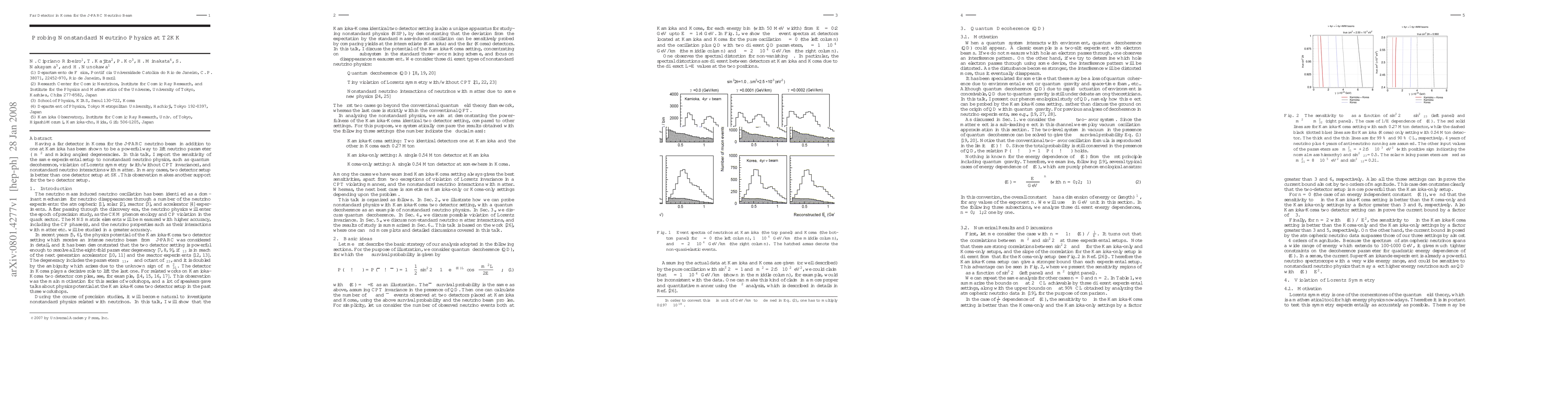 Having a far detector in Korea for the J-PARC neutrino beam in addition to one at Kamioka has been shown to be a powerful way to lift neutrino parameter ($\Delta m^2$ and mixing angles) degeneracies. In this talk, I report the sensitivity of the same experimental setup to nonstandard neutrino physics, such as quantum decoherence, violation of Lorentz symmetry (with/without CPT invariance), and nonstandard neutrino interactions with matter. In many cases, two detector setup is better than one detector setup at SK. This observation makes another support for the two detector setup.
