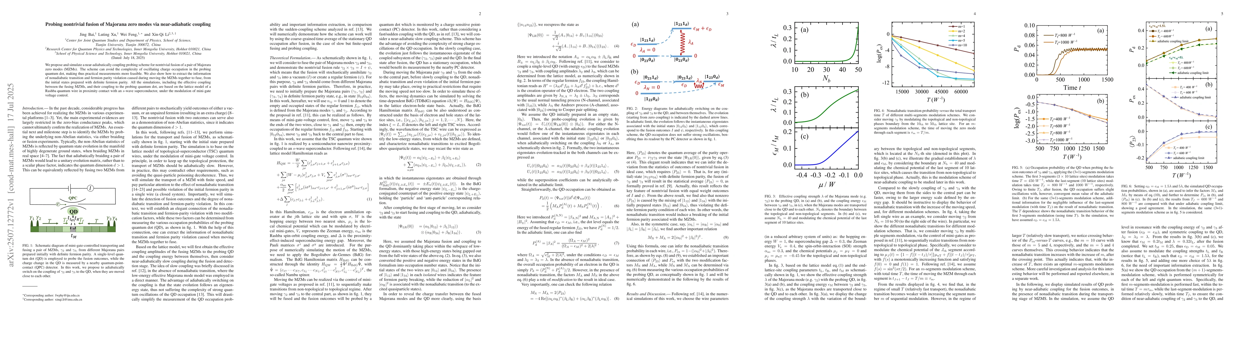 We propose and simulate a near-adiabatically coupling probing scheme for nontrivial fusion of a pair of Majorara zero modes (MZMs). The scheme can avoid the complexity of oscillating charge occupation in the probing quantum dot, making thus practical measurements more feasible. We also show how to extract the information of nonadiabatic transition and fermion parity violation caused during moving the MZMs together to fuse, from the initial states prepared with definite fermion parity. All the simulations, including the effective coupling between the fusing MZMs, and their coupling to the probing quantum dot, are based on the lattice model of a Rashba quantum wire in proximity contact with an s-wave superconductor, under the modulation of mini-gate voltage control.