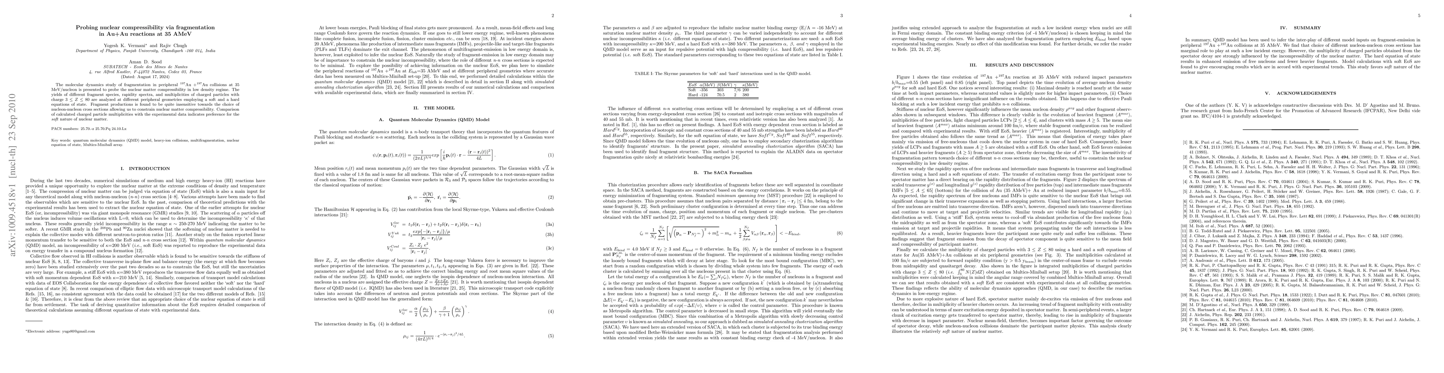 This study investigates fragmentation in peripheral gold-gold collisions at 35 MeV/nucleon to probe nuclear compressibility. Analysis of fragment yields and charged particle multiplicities suggests a preference for a soft nuclear equation of state, constraining nuclear matter compressibility in low-density regimes.