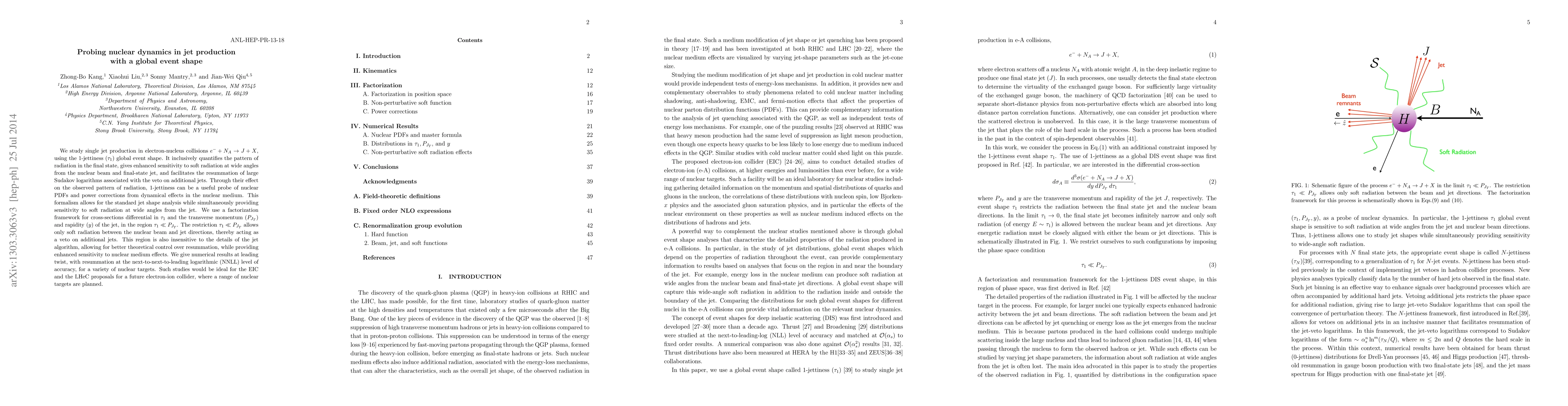 Researchers studied single jet production in electron-nucleus collisions using a global event shape called 1-jettiness, to probe nuclear dynamics and test nuclear PDFs.