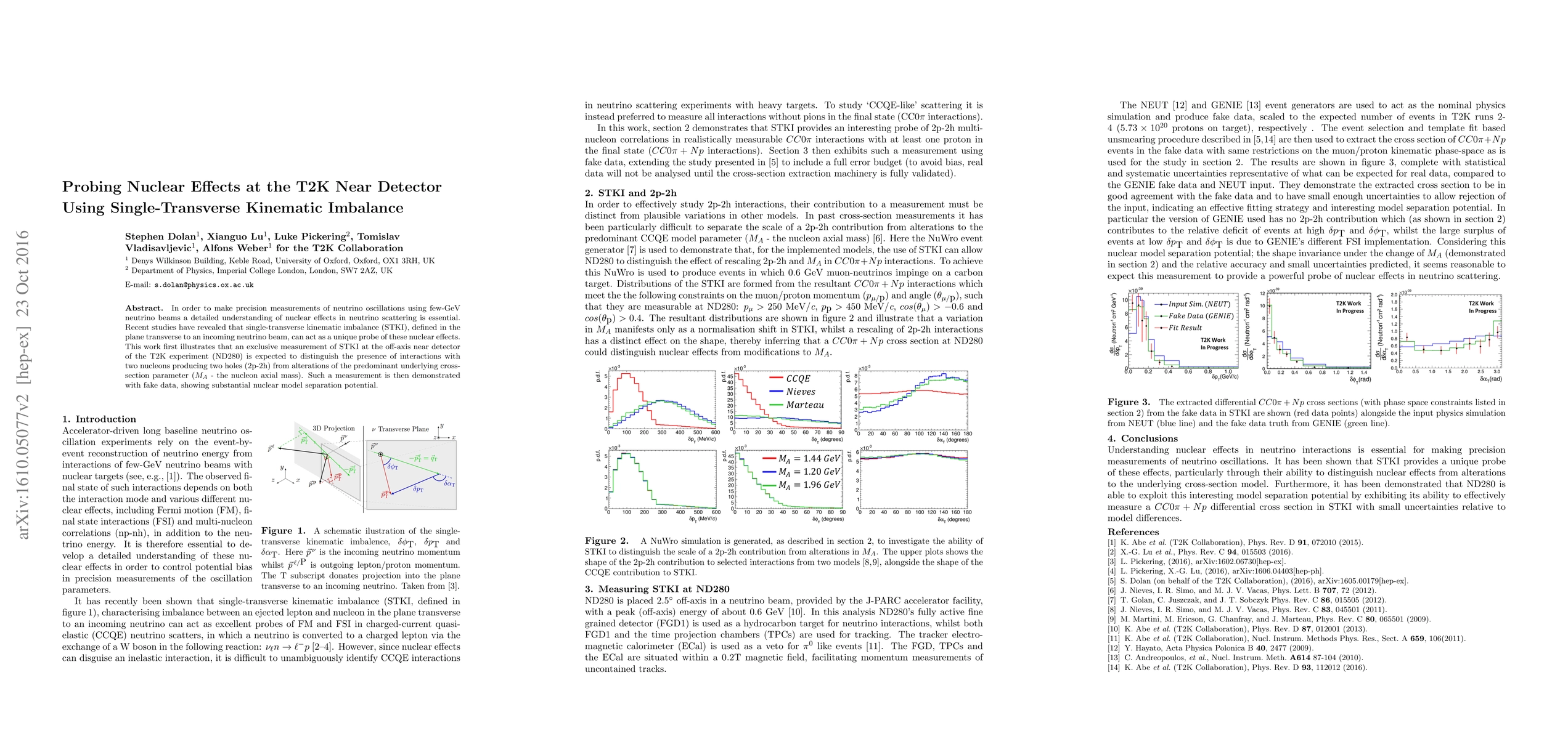 The study demonstrates the use of single-transverse kinematic imbalance (STKI) as a unique probe of nucleare effects in neutrino scattering.
