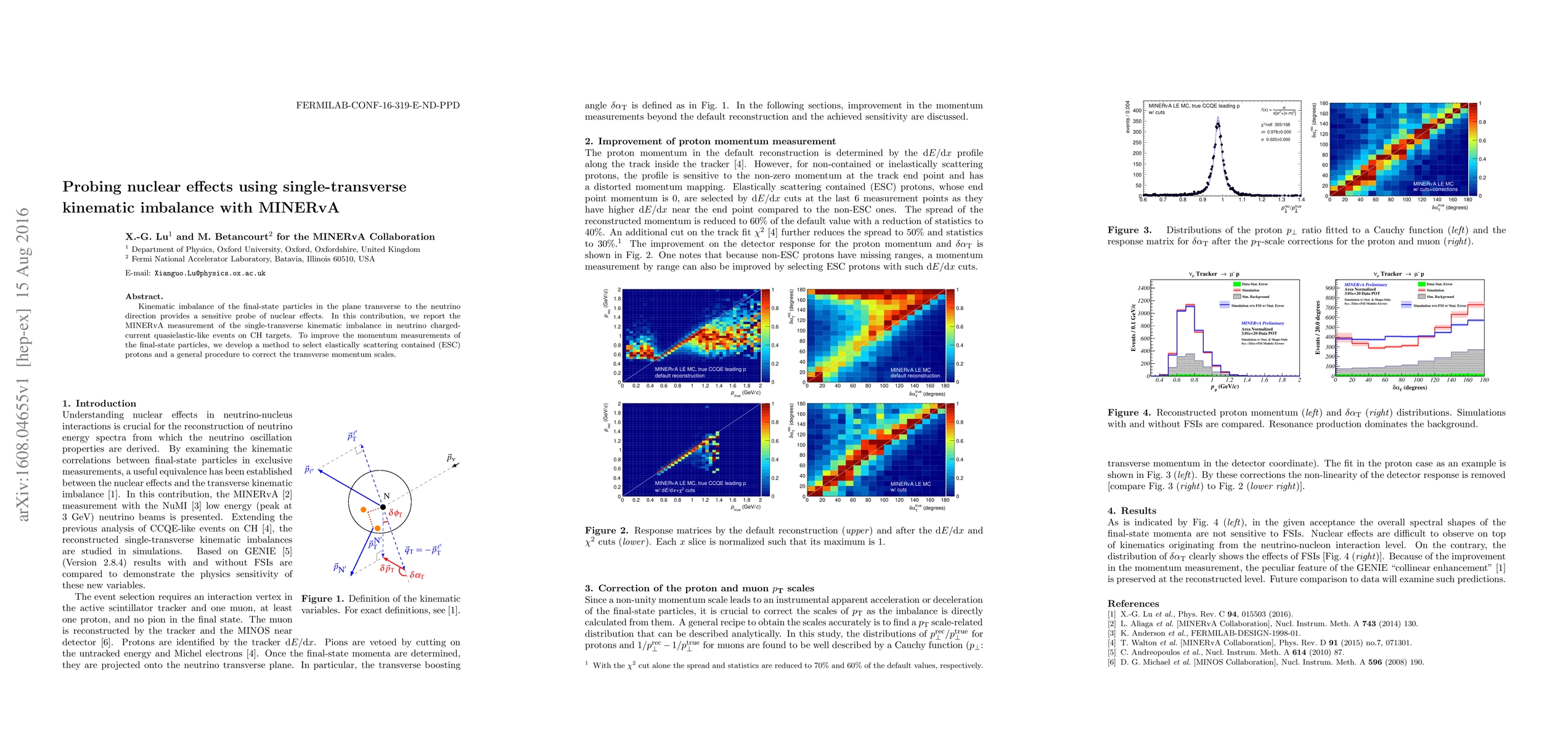 This paper reports on MINERvA's measurement of single-transverse kinematic imbalance in neutrino events to probe nuclear effects, employing improved methods to select and correct for elastically scattering protons and transverse momentum scales.