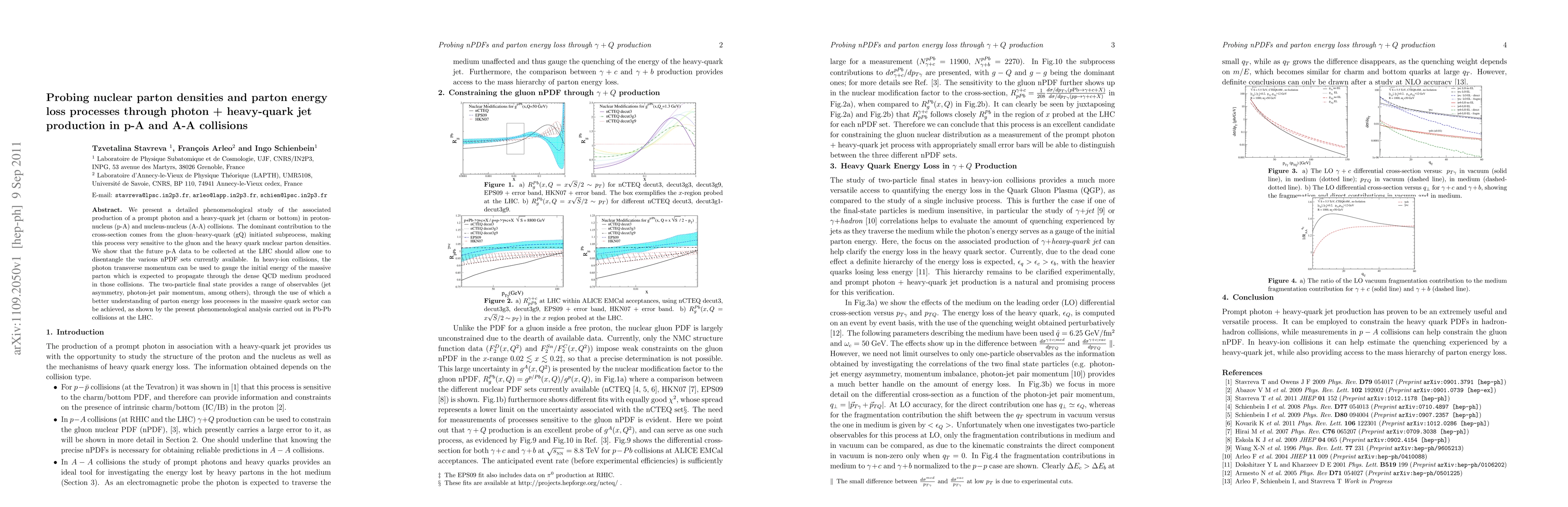 This paper investigates the production of prompt photons and heavy-quark jets in p-A and A-A collisions, focusing on the gluon-heavy quark initiated subprocess to probe nuclear parton densities. Future p-A data at the LHC is expected to differentiate between various nuclear PDF sets, while photon transverse momentum in A-A collisions aids in understanding parton energy loss in heavy-quark sectors.