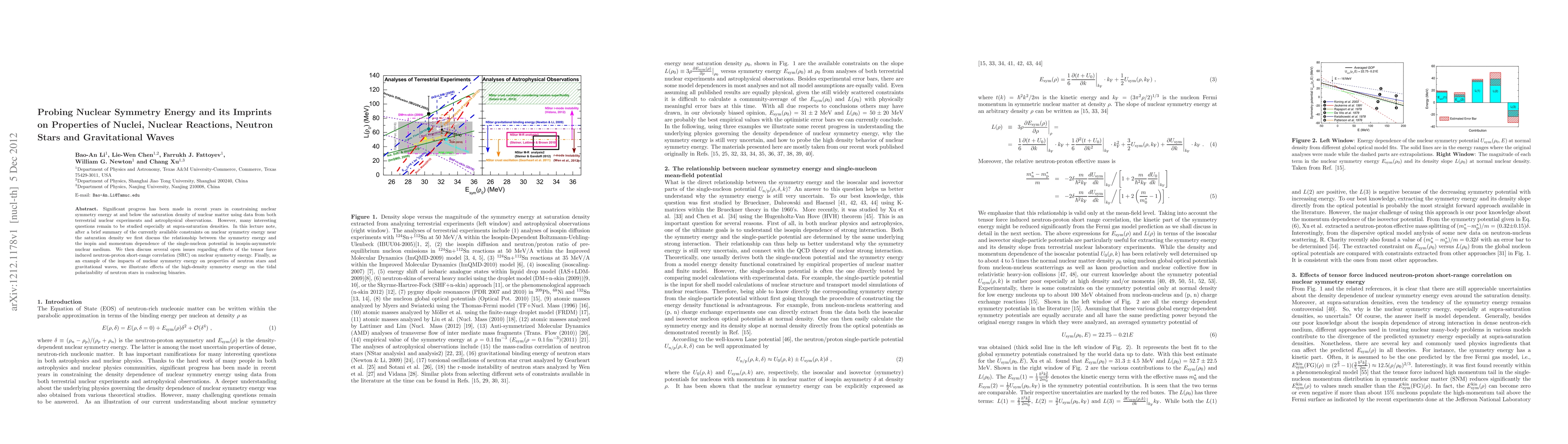 Significant progress has been made in recent years in constraining nuclear symmetry energy at and below the saturation density of nuclear matter using data from both terrestrial nuclear experiments and astrophysical observations. However, many interesting questions remain to be studied especially at supra-saturation densities. In this lecture note, after a brief summary of the currently available constraints on nuclear symmetry energy near the saturation density we first discuss the relationship between the symmetry energy and the isopin and momentum dependence of the single-nucleon potential in isospin-asymmetric nuclear medium. We then discuss several open issues regarding effects of the tensor force induced neutron-proton short-range correlation (SRC) on nuclear symmetry energy. Finally, as an example of the impacts of nuclear symmetry energy on properties of neutron stars and gravitational waves, we illustrate effects of the high-density symmetry energy on the tidal polarizability of neutron stars in coalescing binaries.