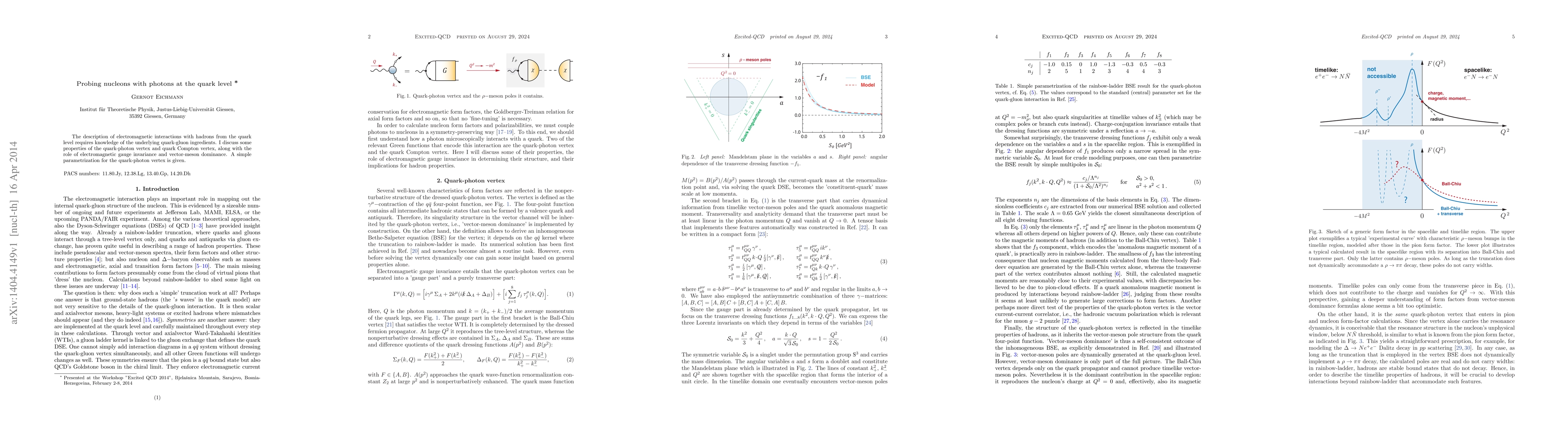 The paper presents a simple parametrization for the quark-photon vertex derived from an inhomogeneous BSE, incorporating electromagnetic gauge invariance and vector-meson dominance, along with an analysis of the quark Compton vertex's structure.