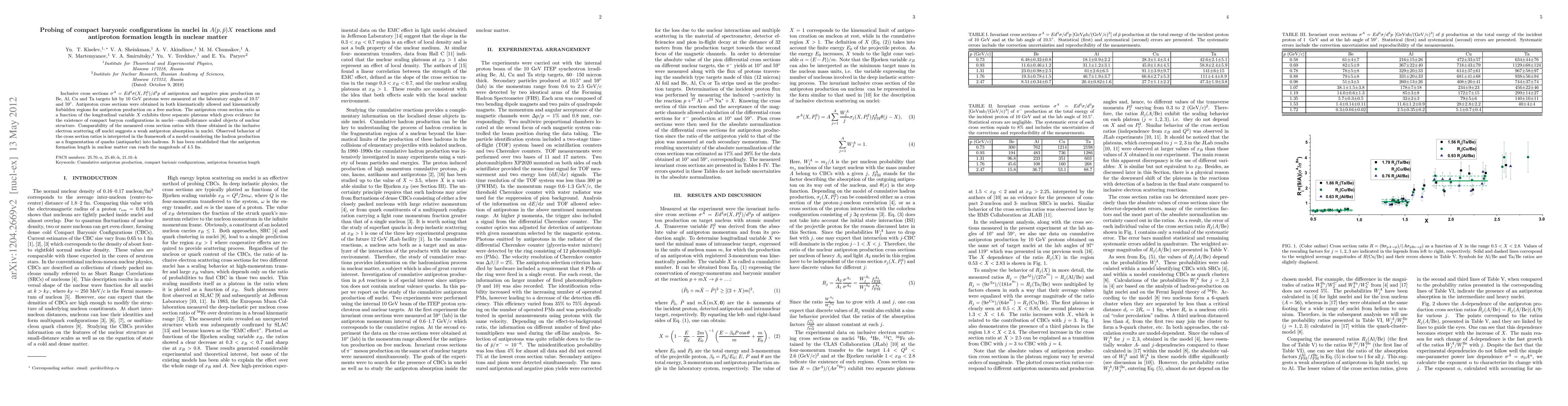 This paper investigates the inclusive cross sections of antiproton and negative pion production in $A(p,{\bar p})X$ reactions on various targets, revealing evidence of compact baryonic structures in nuclei. The study also finds that the antiproton formation length in nuclear matter can be as large as 4.5 fm, suggesting weak antiproton absorption.